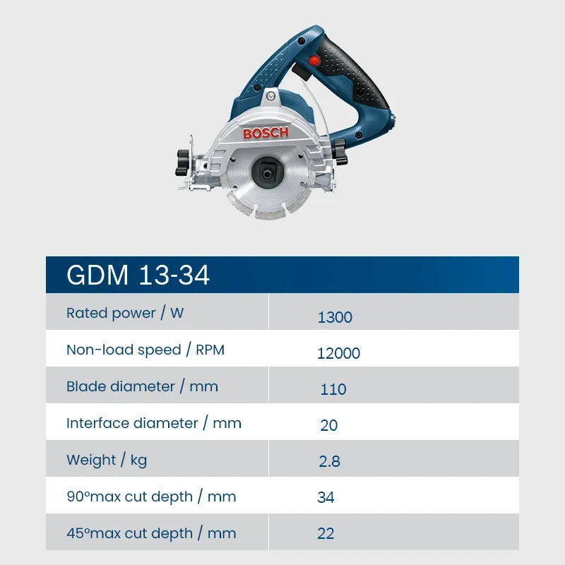 Bosch GDM 13-34 Electric Circular Saw 110mm Tile Stone Marble Granite Cutting Machine 2.8Kg 1300W Portable Discs Saw Power Tool