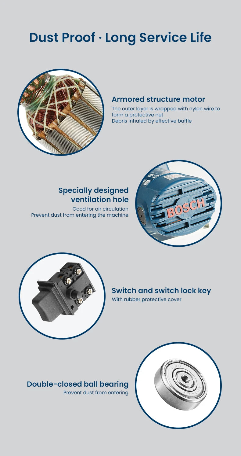 - Schnelle Arbeitsfortschritte durch starke Motorleistung und präzise Führung, wodurch Projekte zügiger abgeschlossen werden können.