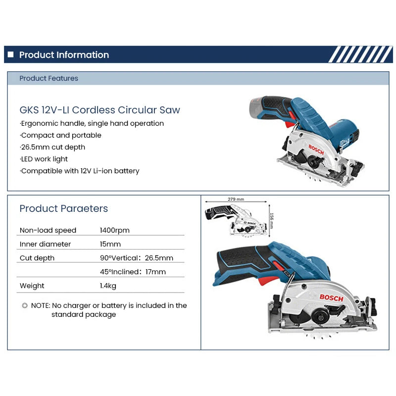 Kreissäge 2025: Bosch GKS 12V-LI Electric Circular Saw 85Mm Cordless 12V - Wood Saw Electric Chainsaw Professional Woodworking Cutting Power Tool Collection