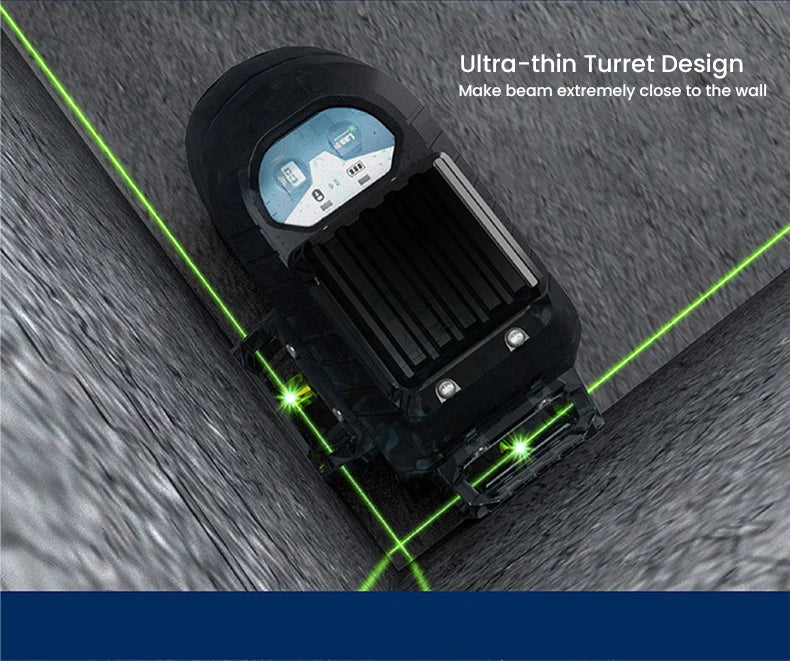 - Grüne Laserlinien sorgen für bessere Erkennbarkeit bei unterschiedlicher Beleuchtung, wodurch Arbeitsabläufe schneller und effizienter werden.