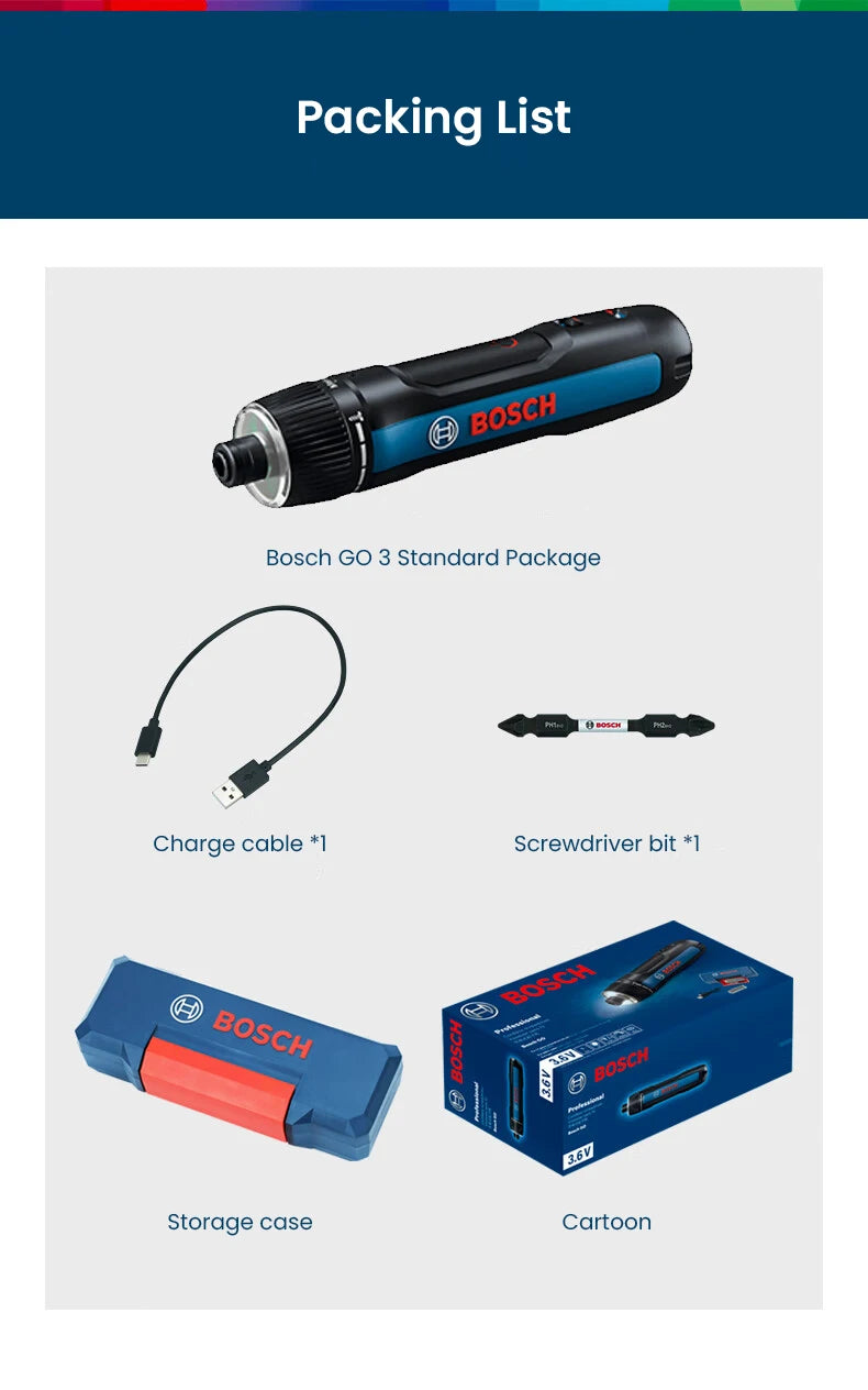 Bosch GO 3 Akku Schraubendreher Set 3.6V 5Nm 2 Ah Batterie Elektro Schraubendreher Mini Hand Bohrer Heim Multi-Funktion Elektrowerkzeug