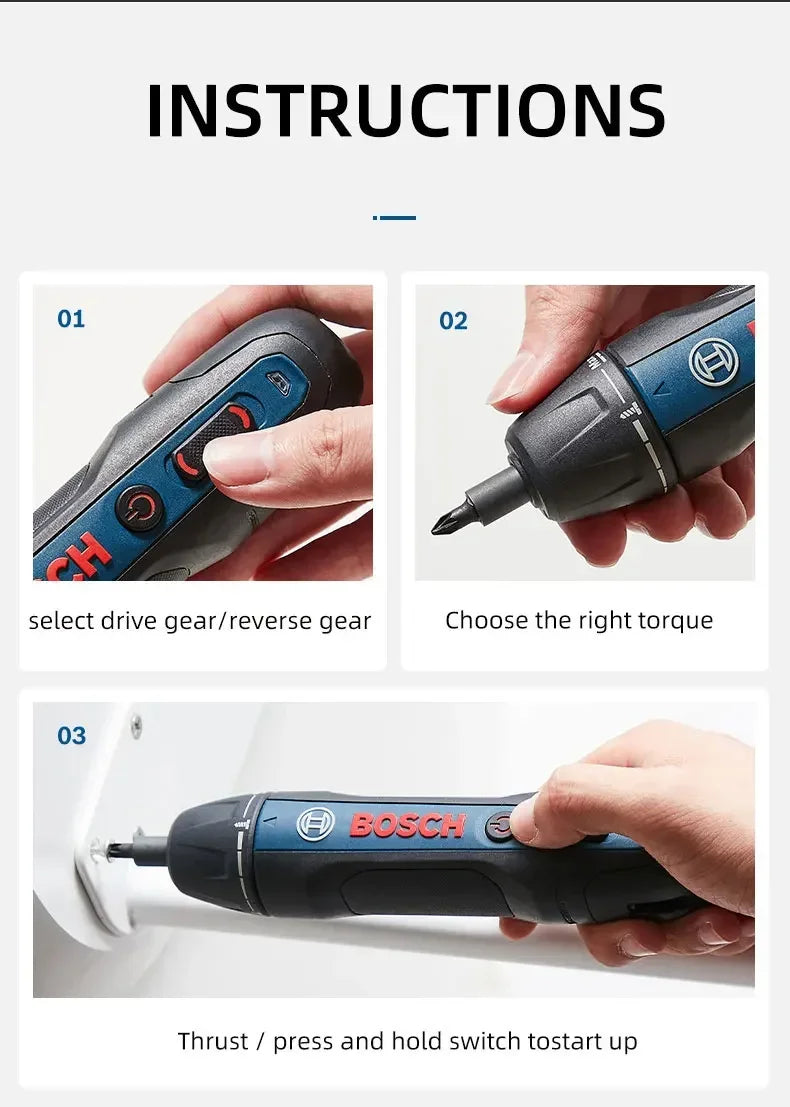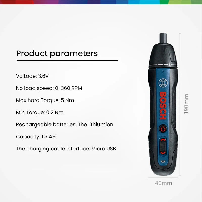 Bosch GO 3 /GO2 Cordless Screwdriver 3.6V Rechargeable Electric Screw Driver Multi-Function Drill Repairing Power Tools Kit GO 2