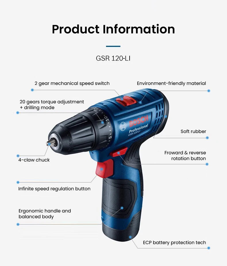 Der Bosch GSR 120-Li 2025 kombiniert bürstenlosen EC-Motor, 12V-Li-Ion-Technologie und ein robustes 2-Gang-Planetengetriebe, um präzise, kraftvolle und ausdauernde Leistung auf Baustelle und in der Werkstatt zu liefern.