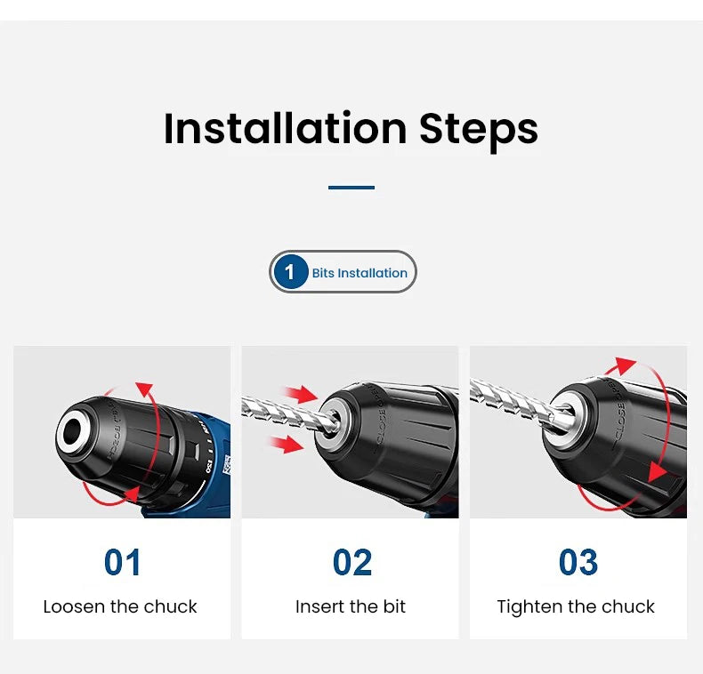 - Schneller Wechsel von Bits und Bohrern erlaubt zügiges Arbeiten ohne lange Unterbrechungen.