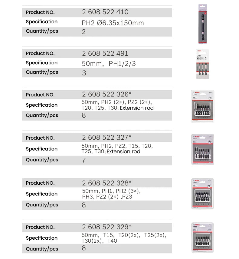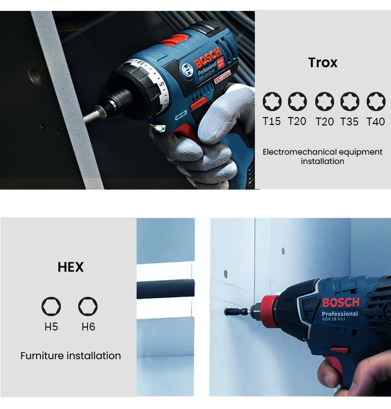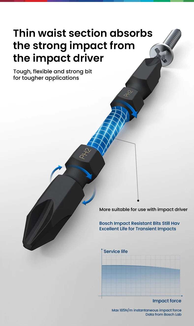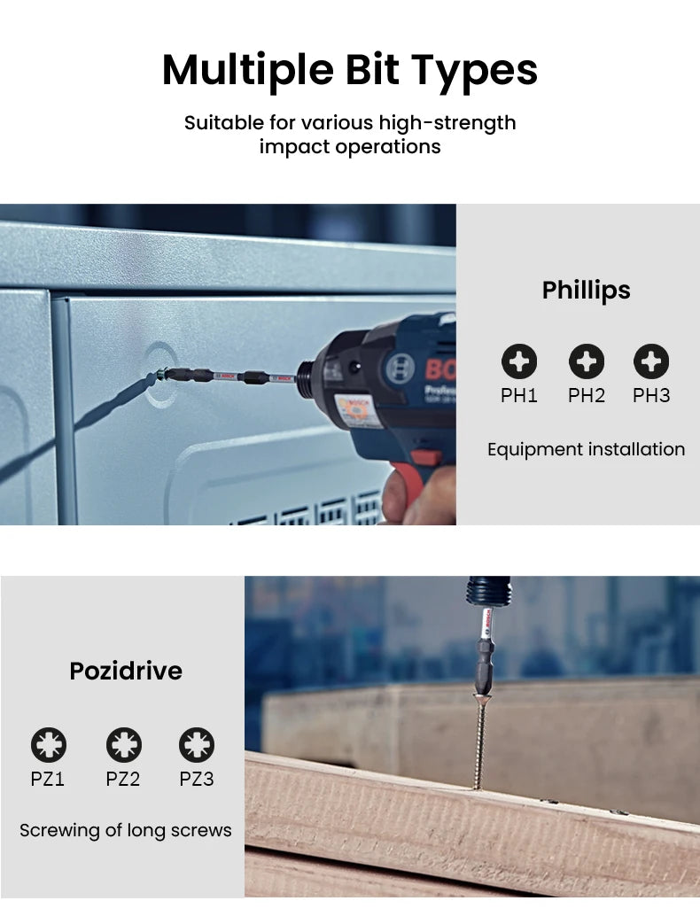 Bosch Resistant Impact Bits for Screwdriver Drill Accessories S2 Steel Metal Drills Bit Set for Bosch GDR/GDX Series Power Tools