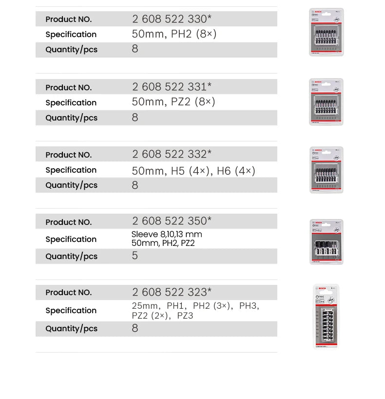 - 1 x Satz Bosch Resistant Impact Bits (ausgewählte Bit-Typen entsprechend Produktvariante)