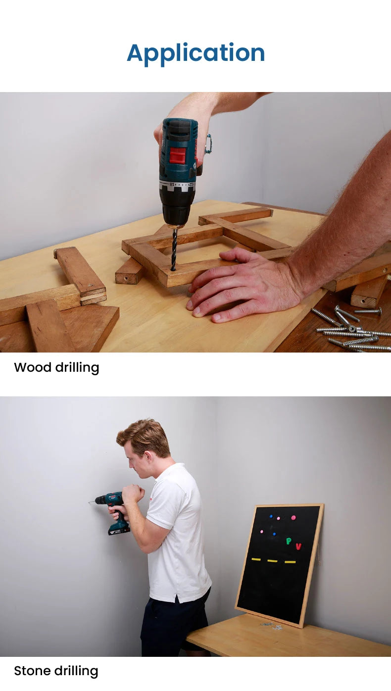 - Schneller Wechsel: Einheitliche Schaftformen ermöglichen einen zügigen Wechsel zwischen Bohrer und Bits in gängigen Akkuschraubern und Bohrmaschinen.