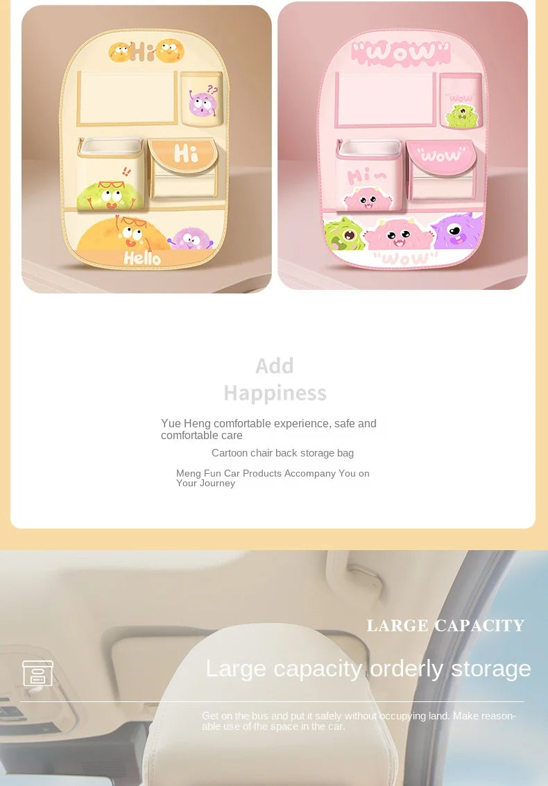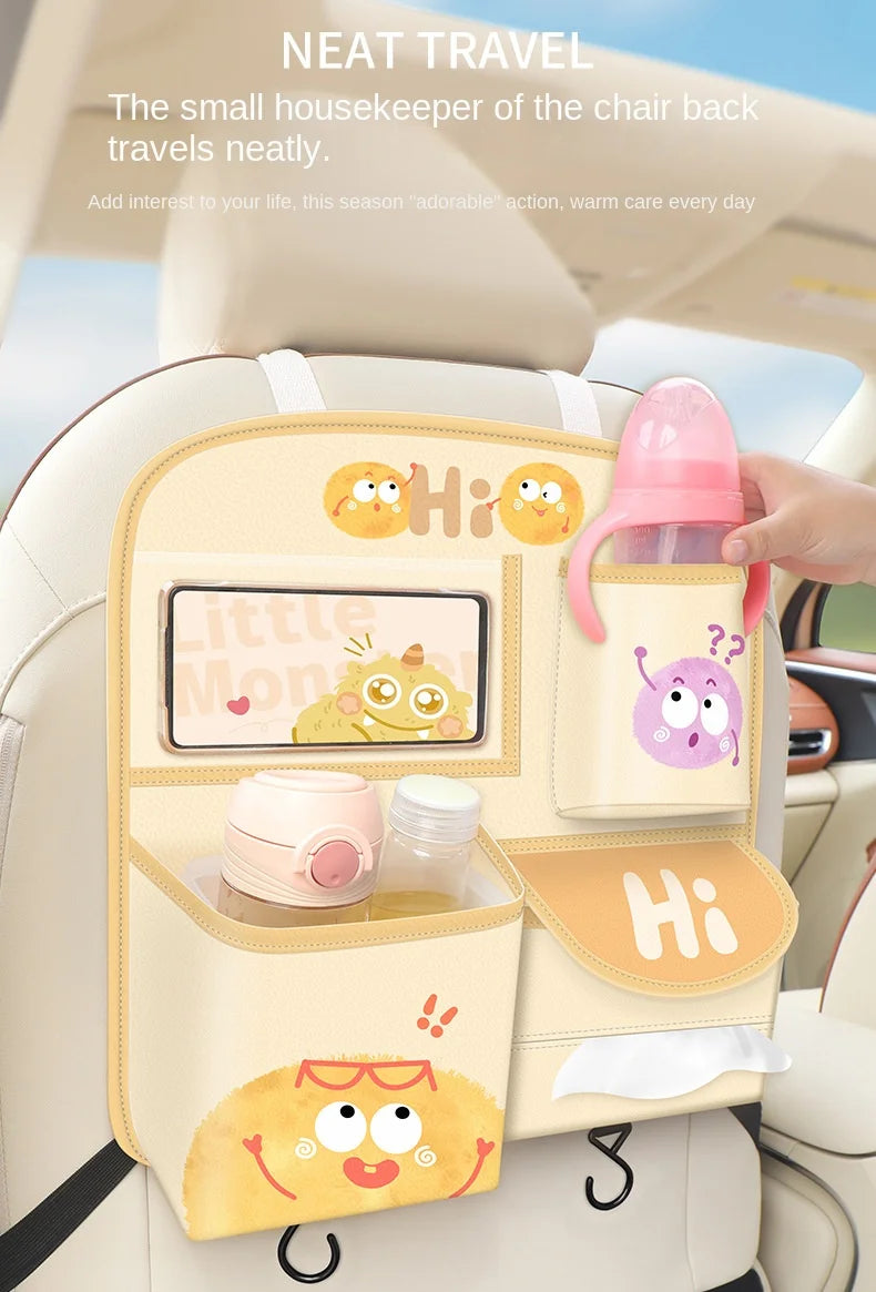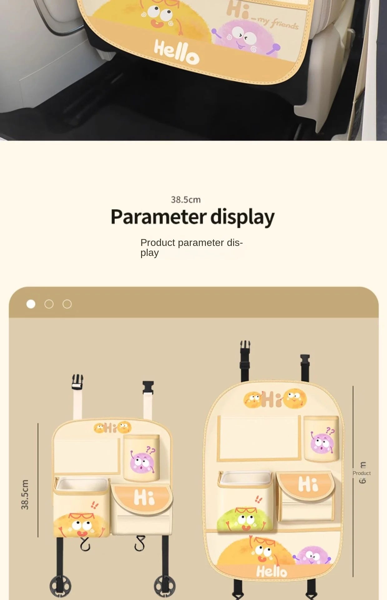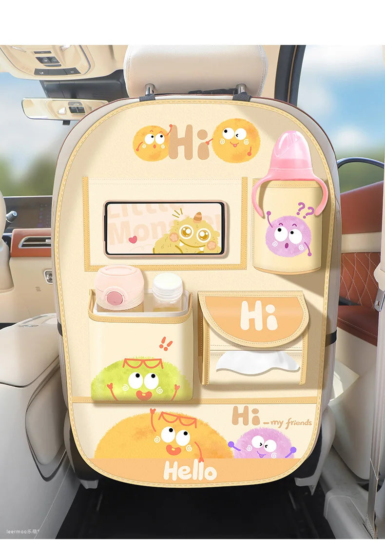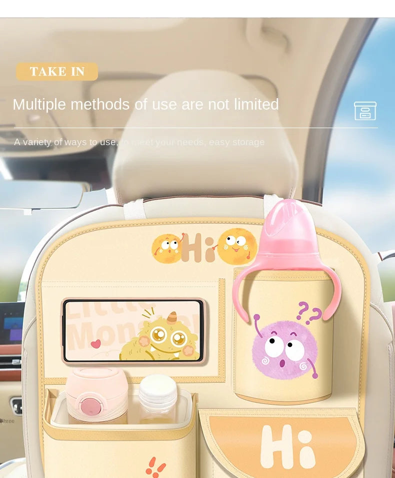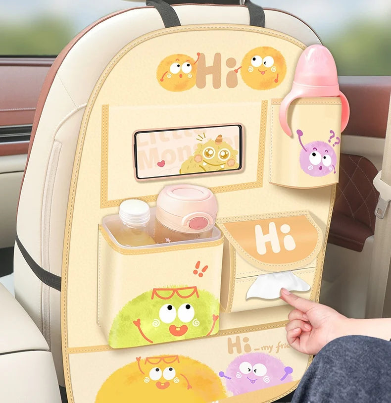 - Schneller Zugriff: Wichtige Gegenstände wie Feuchttücher, Snacks, Mobilgeräte oder Papiere sind jederzeit griffbereit und ordentlich verstaut.