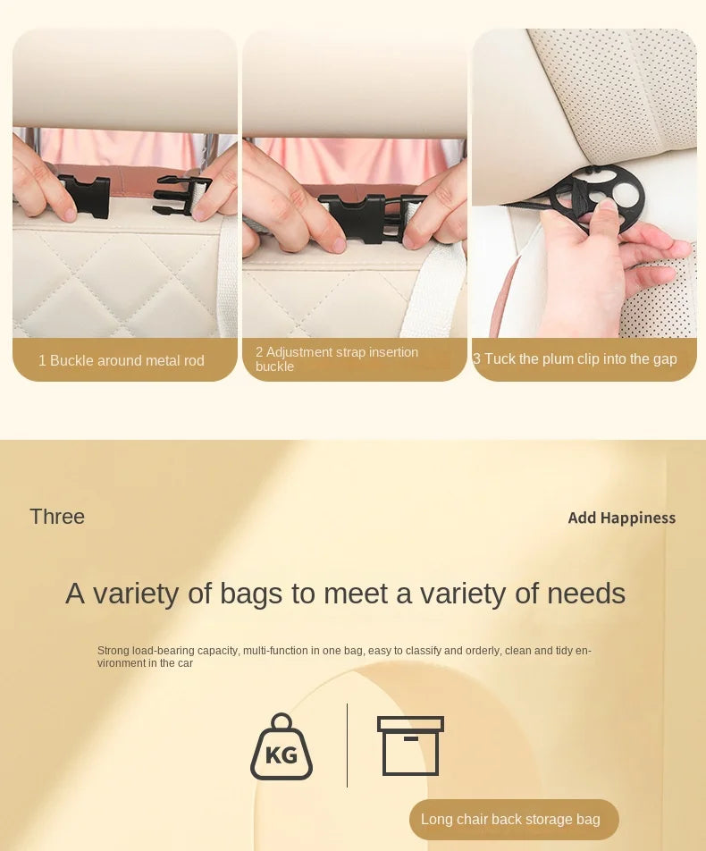 - Maximale Raumausnutzung: Hängt platzsparend an der Rückseite des Sitzes und schafft zusätzlichen Stauraum, ohne das Platzangebot der Passagiere einzuschränken.