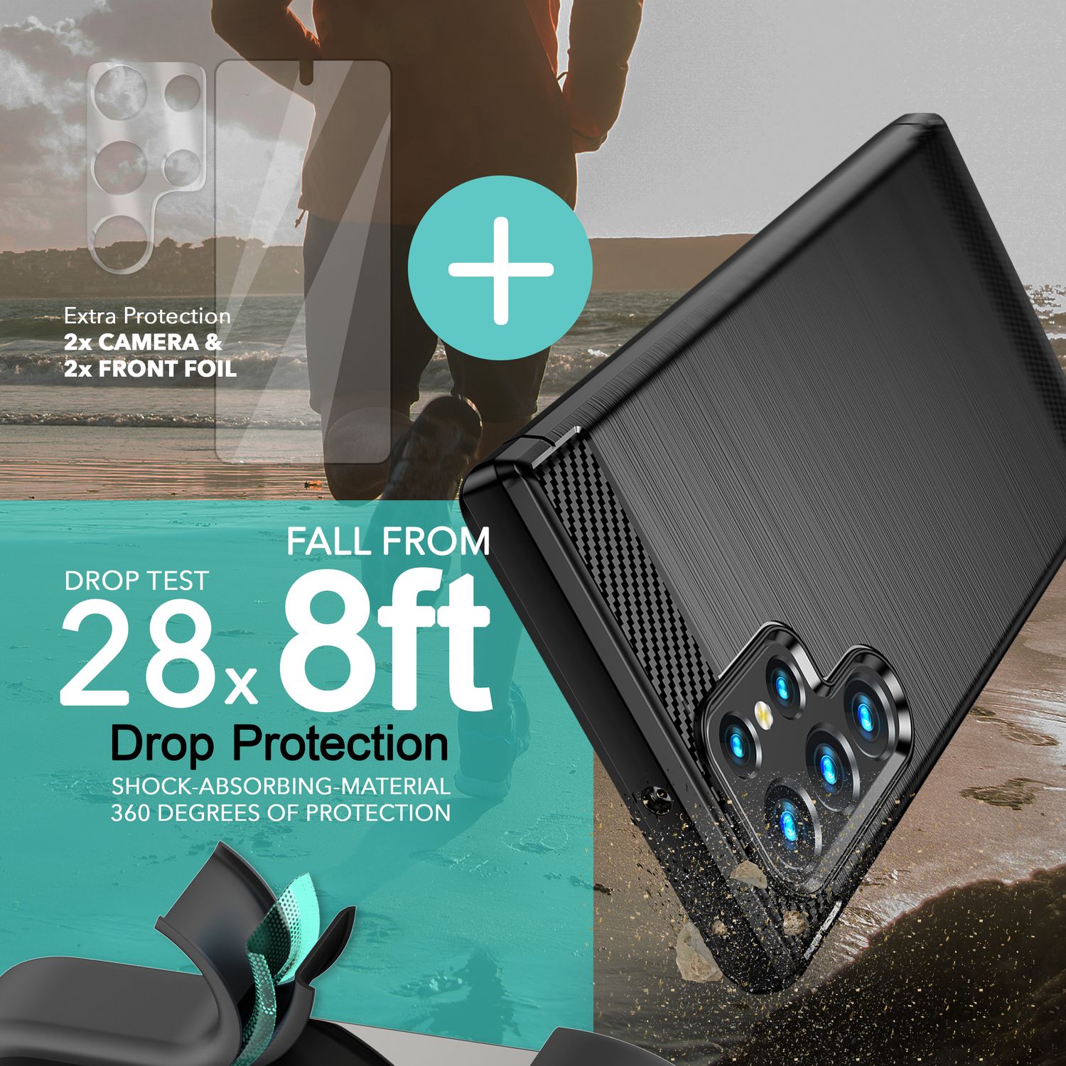 Carbon Look Hülle für Samsung Galaxy S23 Ultra, 2x Displayschutz & Kameraschutz