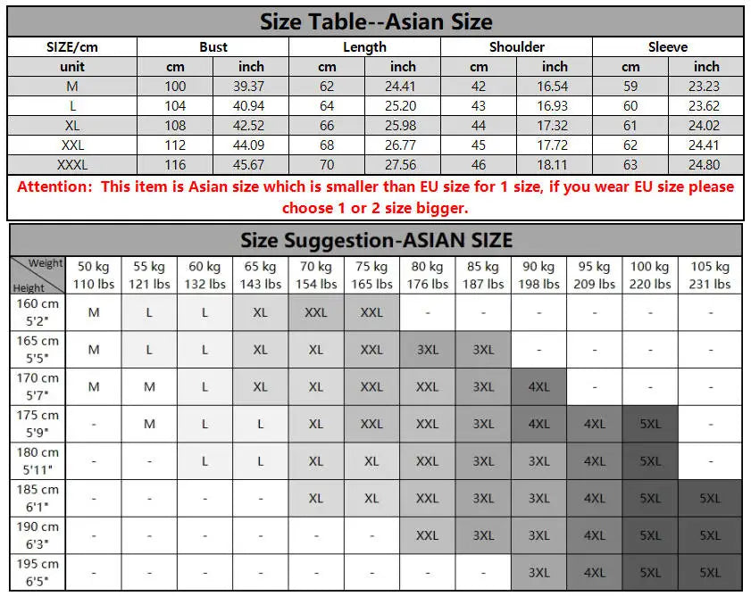 - Größeninformation (Längenangabe): Asiatische M – 100 cm (39.37 in); Asiatische L – 104 cm (40.94 in); Asiatische XL – 108 cm (42.52 in); Asiatische XXL – 112 cm (44.09 in); Asiatische XXXL – 116 cm (45.67 in)