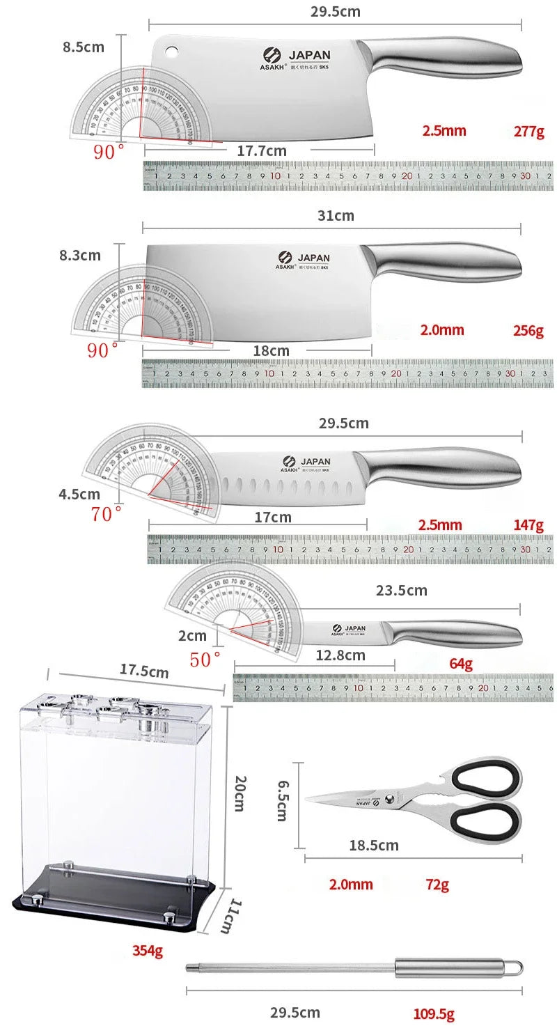 - Platzsparendes Set: Alle Bestandteile sind so dimensioniert, dass sie in Küchenschubladen oder Messerhaltern gut unterzubringen sind.