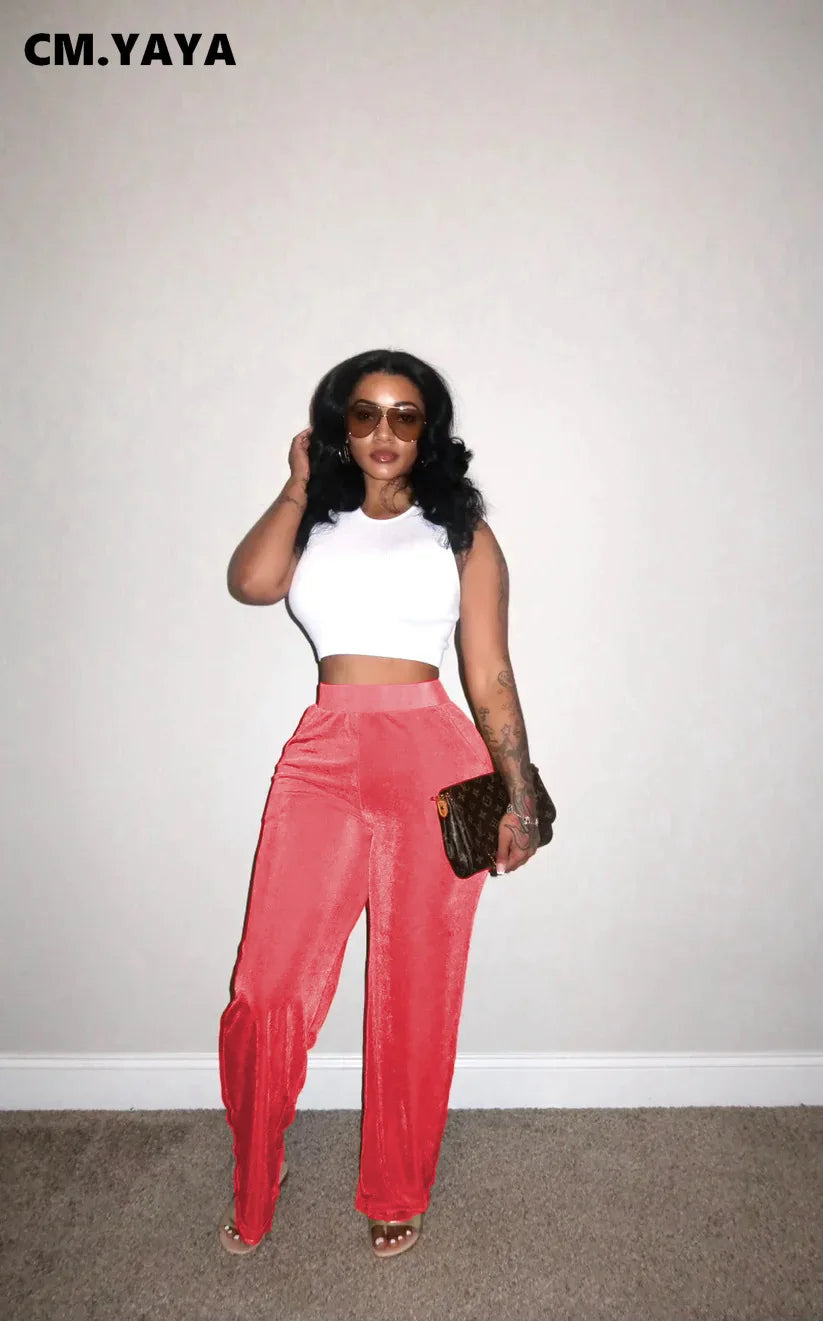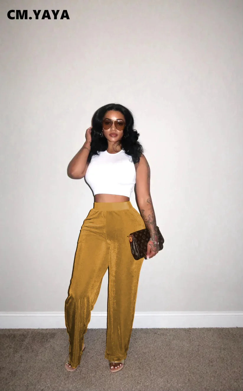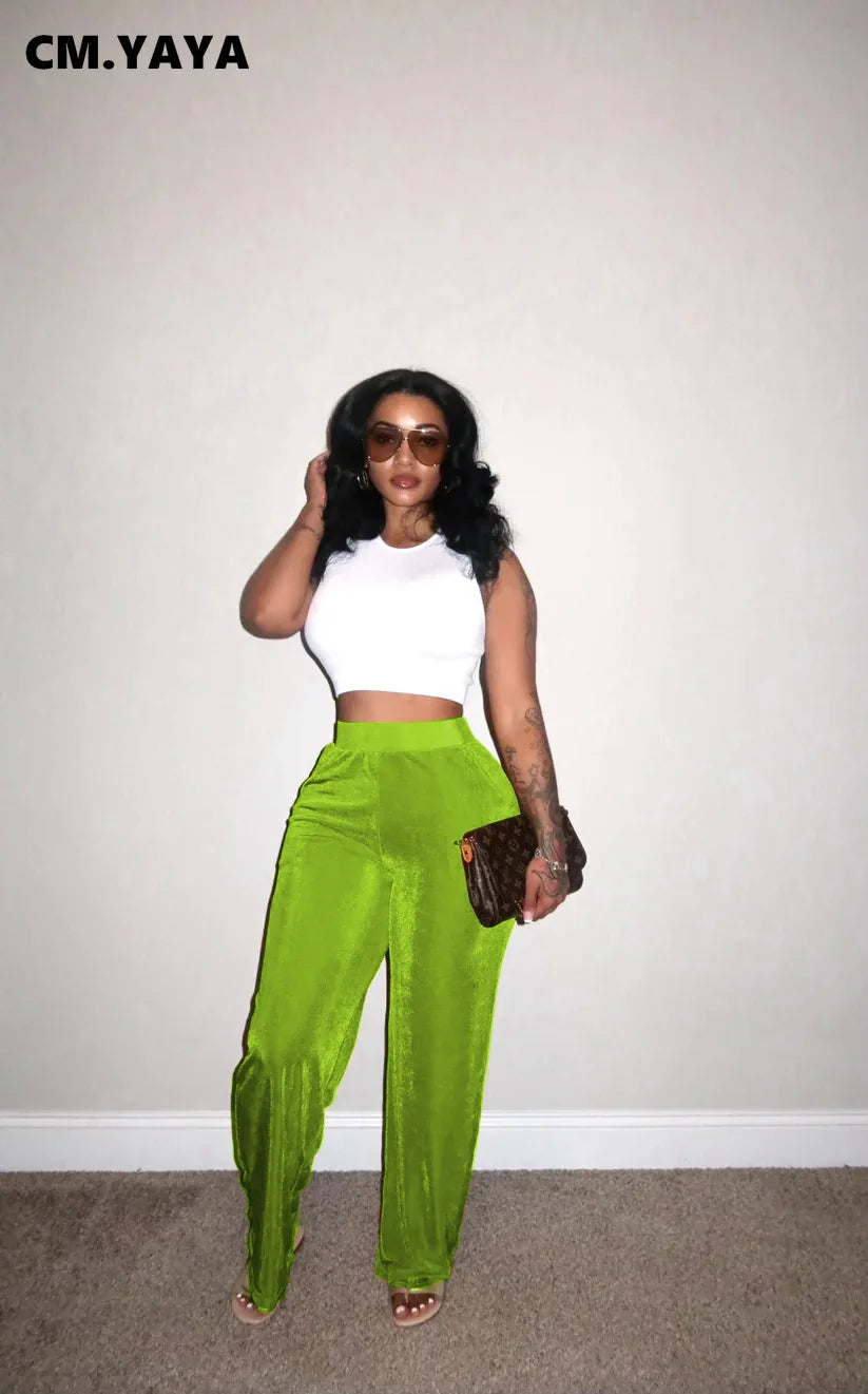 CM.YAYA Samt Hohe Taille Hose - Eleganter Komfort und schmeichelhafte Passform