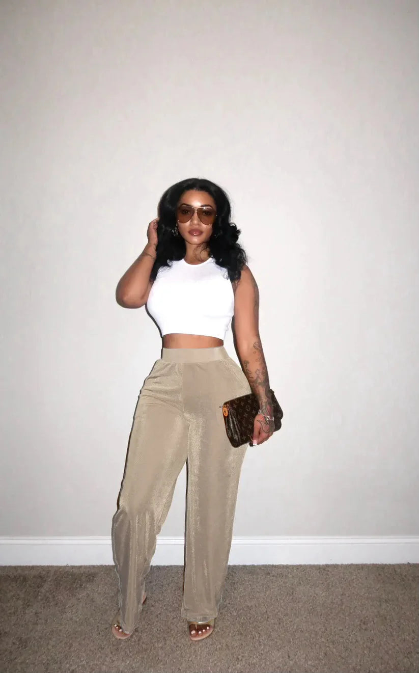 Erleben Sie luxuriösen Samtkomfort kombiniert mit einer hohen Taille und einem elastischen Bund für perfekten Sitz und zeitlosen Stil.
