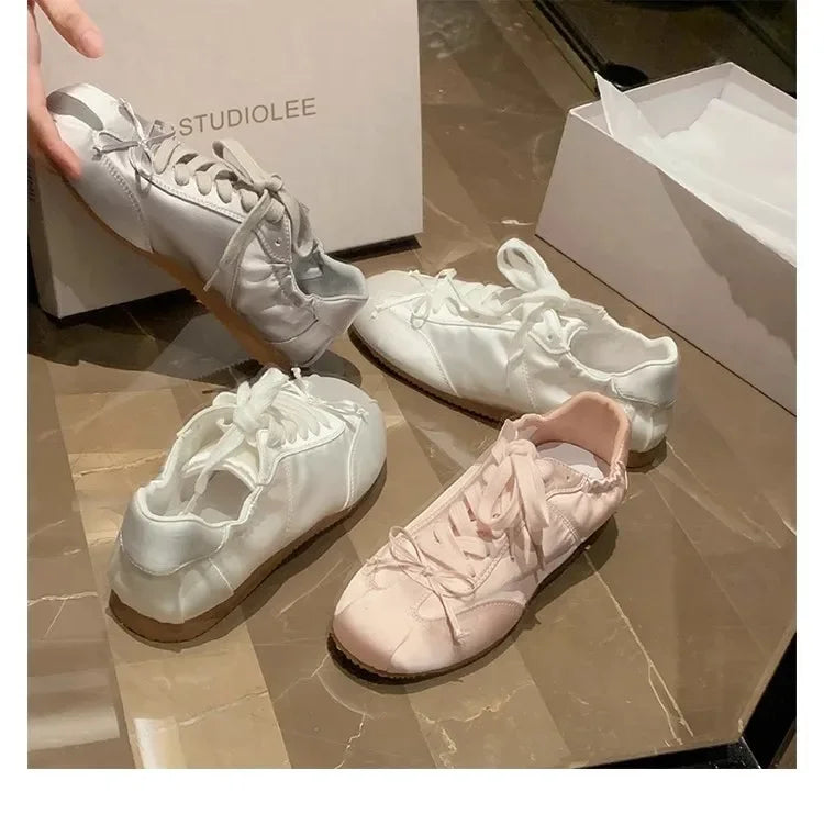 Comemore 2025 Neu Sommer Damen Ballet Stil Süß Mädchen Sport Board Schuhe Mode Satin Schleife Freizeit Flats Damen Komfortabel