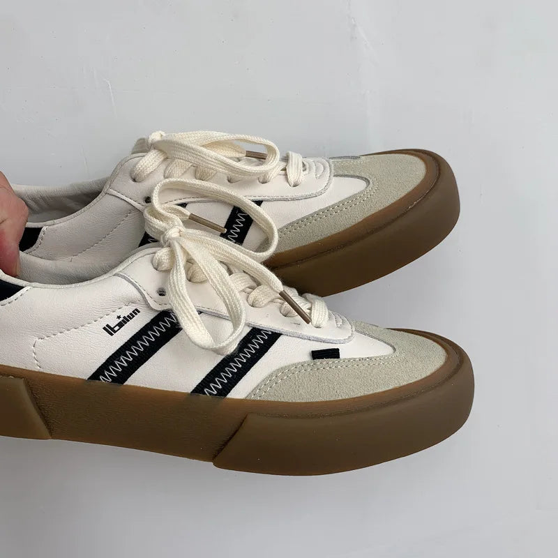 Diese klassischen Retro Leder-Sneakers sind sorgfältig gestaltet, um Alltagstauglichkeit, elegantes Design und Tragekomfort zu verbinden. Durch die Kombination aus hochwertigem Leder, atmungsaktivem Mesh-Futter und passgenauer Schnürung entsteht ein Schuh, der sowohl auf längeren Wegen als auch im urbanen Umfeld überzeugt. Die neutrale, zeitlose Optik macht diese Sneaker zu einem vielseitigen Begleiter für zahlreiche Anlässe — vom entspannten Wochenende über den Arbeitsweg bis hin zu Freizeitaktivitäten. Dank der robusten Verarbeitung und leicht zu pflegenden Materialien behalten die Schuhe ihr Erscheinungsbild auch bei regelmäßiger Nutzung.