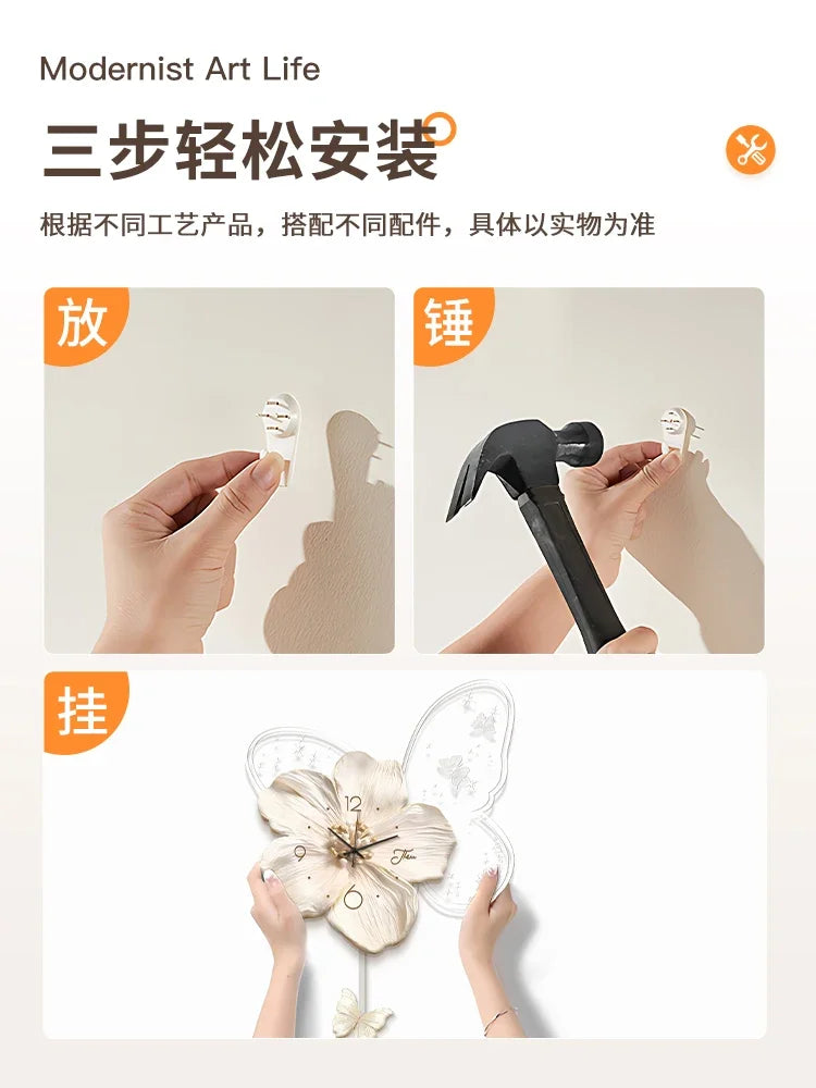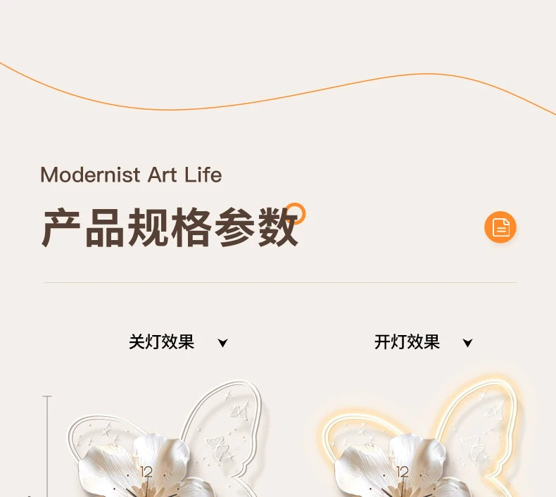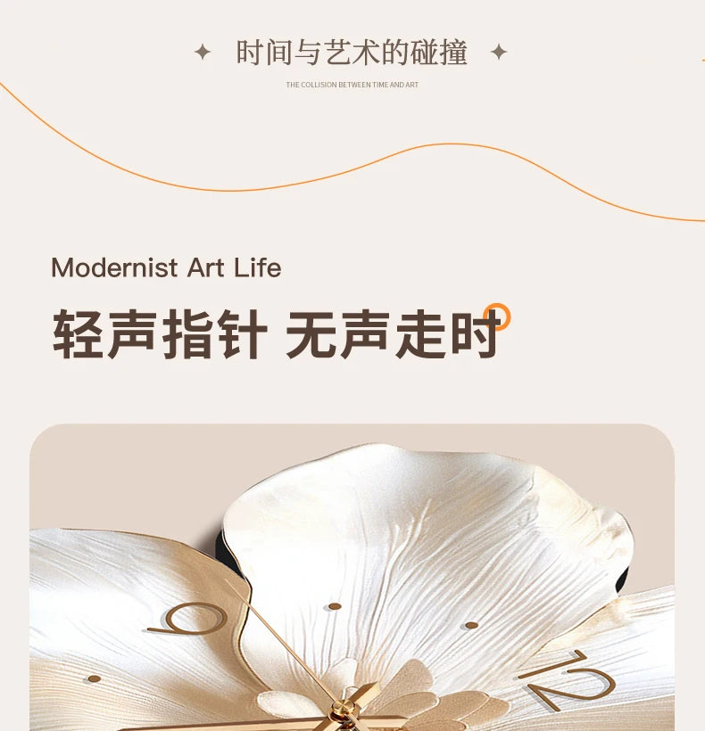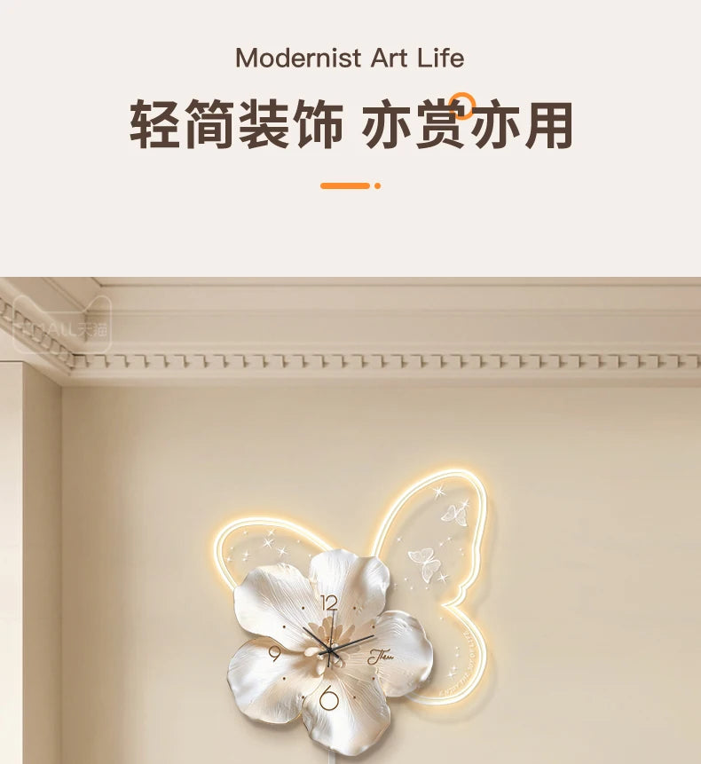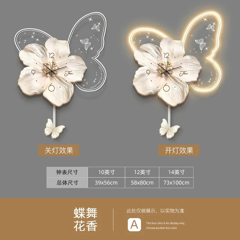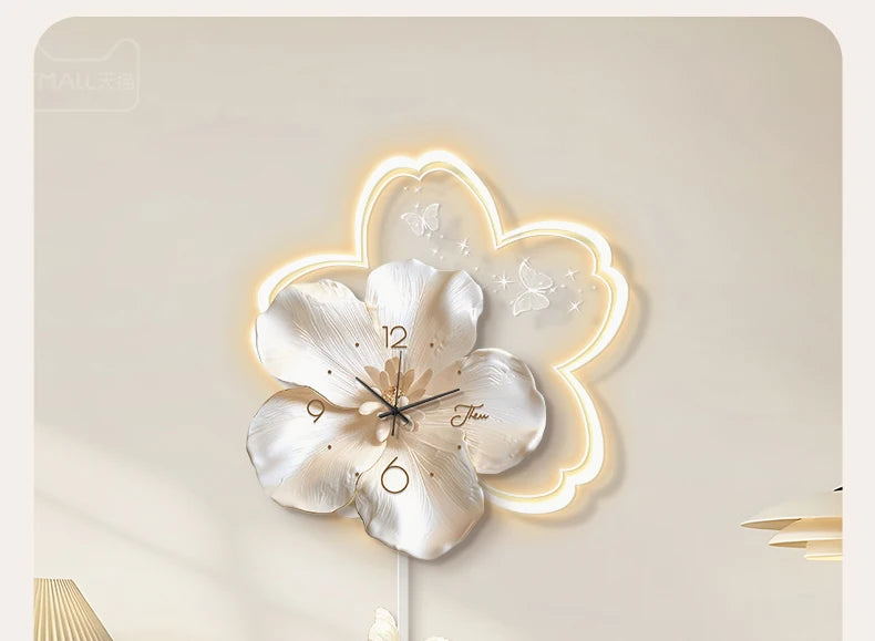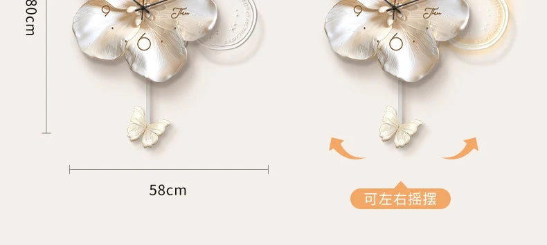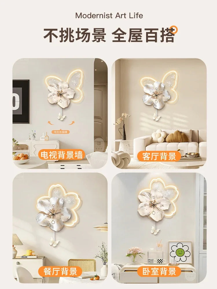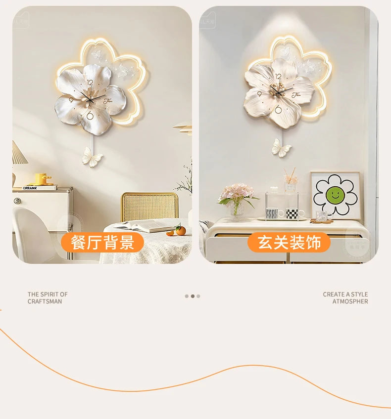 Cream Style Living Room Decoration with LED Light Wall Clock New Home Decor Creative Swinging Clock