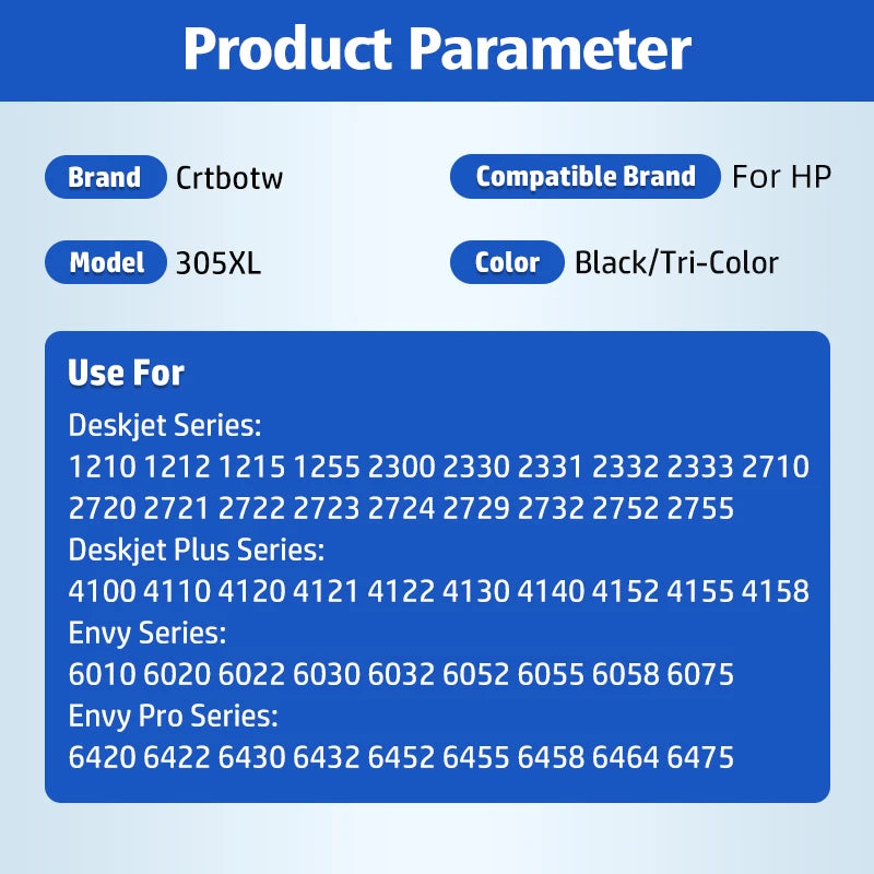 CRTBOTW 305XL Replacement For HP305 305 XL Ink Cartridge For HP DeskJet 2700 2710 2721 2722 Envy Series 4200 6020 6030 6400 6430