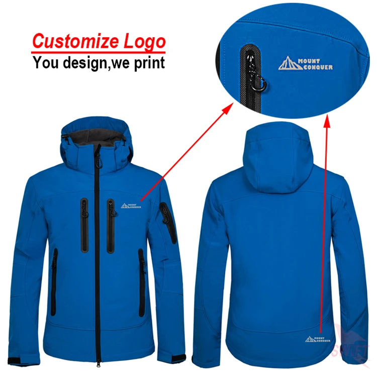 Wasserdichter Softshell-Mantel für Männer mit Custom-Print – Vielseitiger Outdoor-Hoodie für Wetterfestigkeit und Stil
