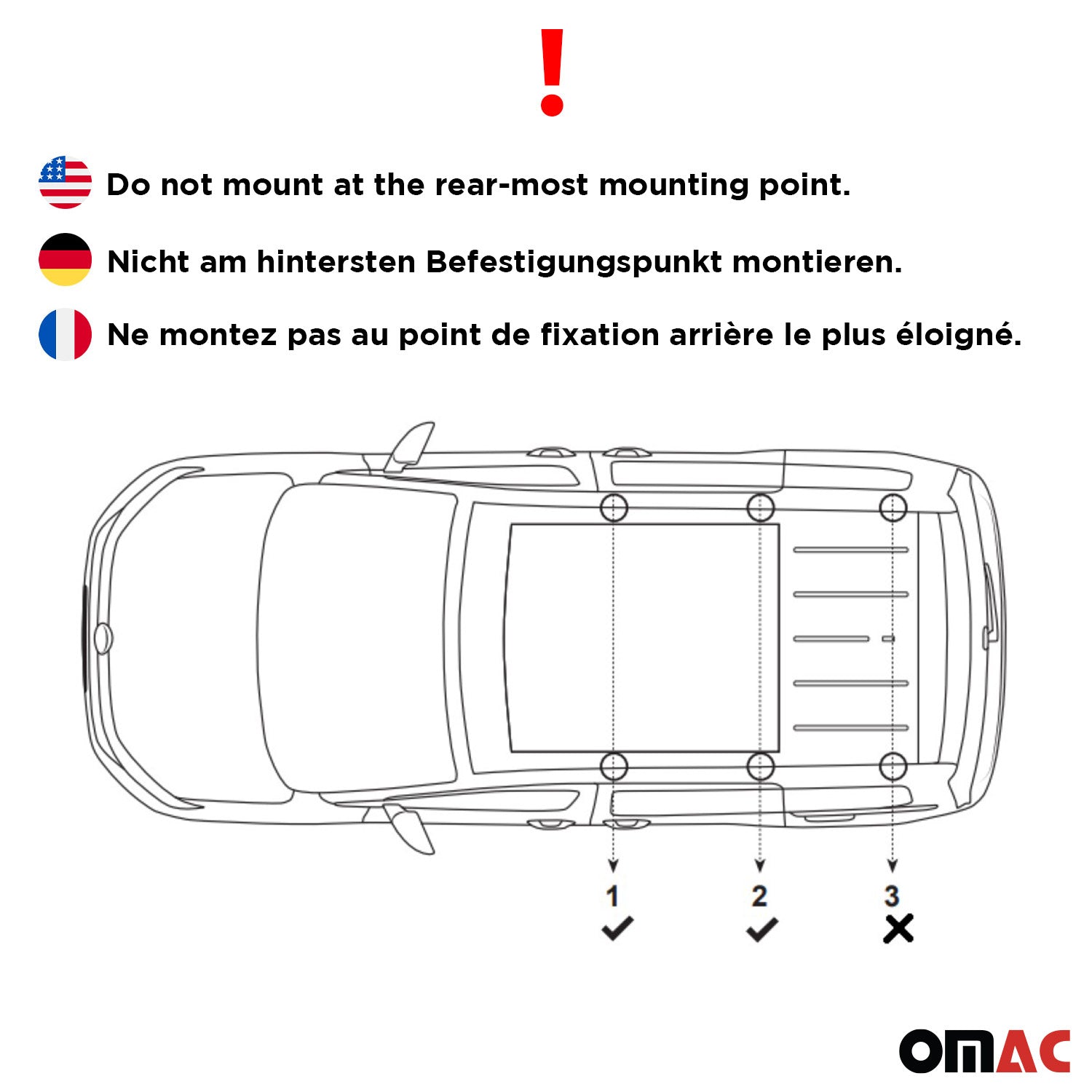 Hinweis: Der Hersteller kann nicht für Personen- oder Sachschäden haftbar gemacht werden, die auf eine unsachgemäße Montage oder Verwendung des Produkts zurückzuführen sind. Modifikationen am Produkt sind strengstens untersagt. Vergewissern Sie sich stets, dass Dachträger oder anderes Zubehör nicht das zu öffnende Schiebedach, Panoramadach oder Glasdach beeinträchtigen. Achten Sie außerdem auf die Kompatibilität mit anderem Dachzubehör, um ein nahtloses Zusammenspiel zu gewährleisten. Sicherheit und ordnungsgemäße Verwendung sind von größter Bedeutung.