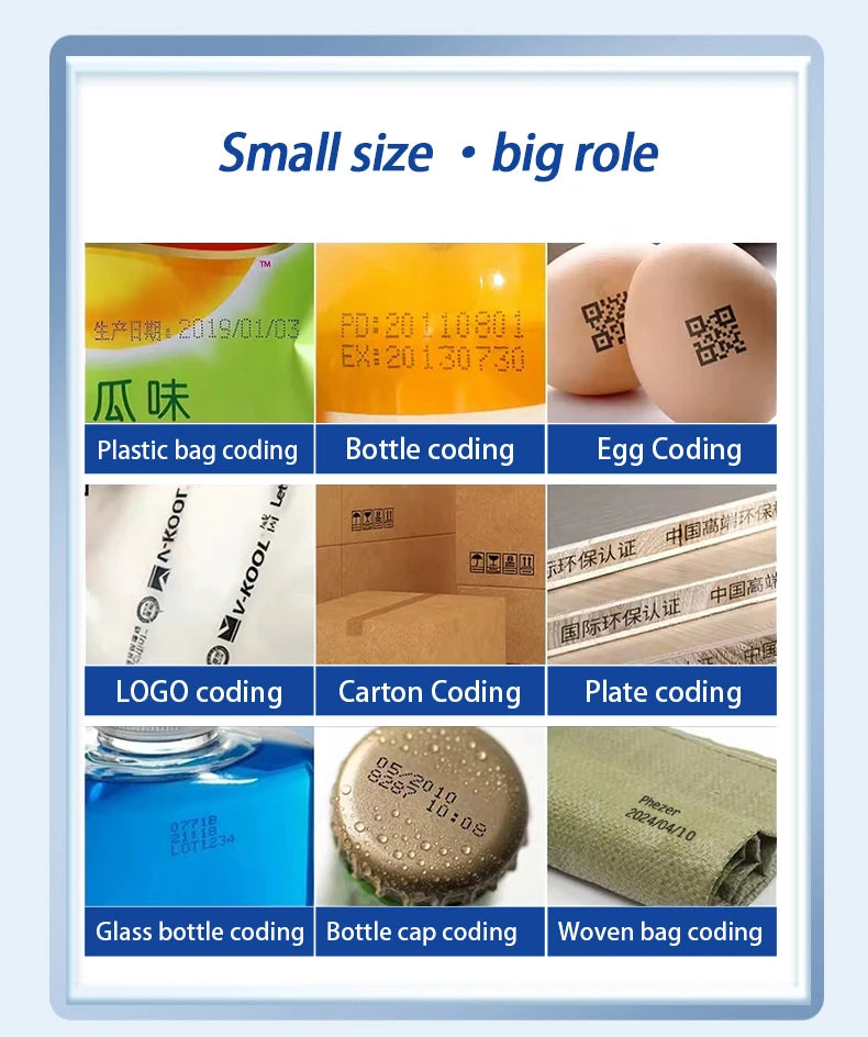 - Flexibilität bei Anwendungen: Geeignet für Text, Barcodes und einfache Grafiken – ideal für Kennzeichnung, Chargenkennzeichnung und Datumsangaben.