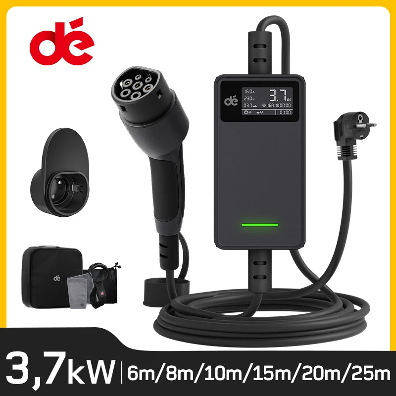 - Elektroauto-Ladegerät Typ 2 16A 3,7kW mit Digitaldisplay