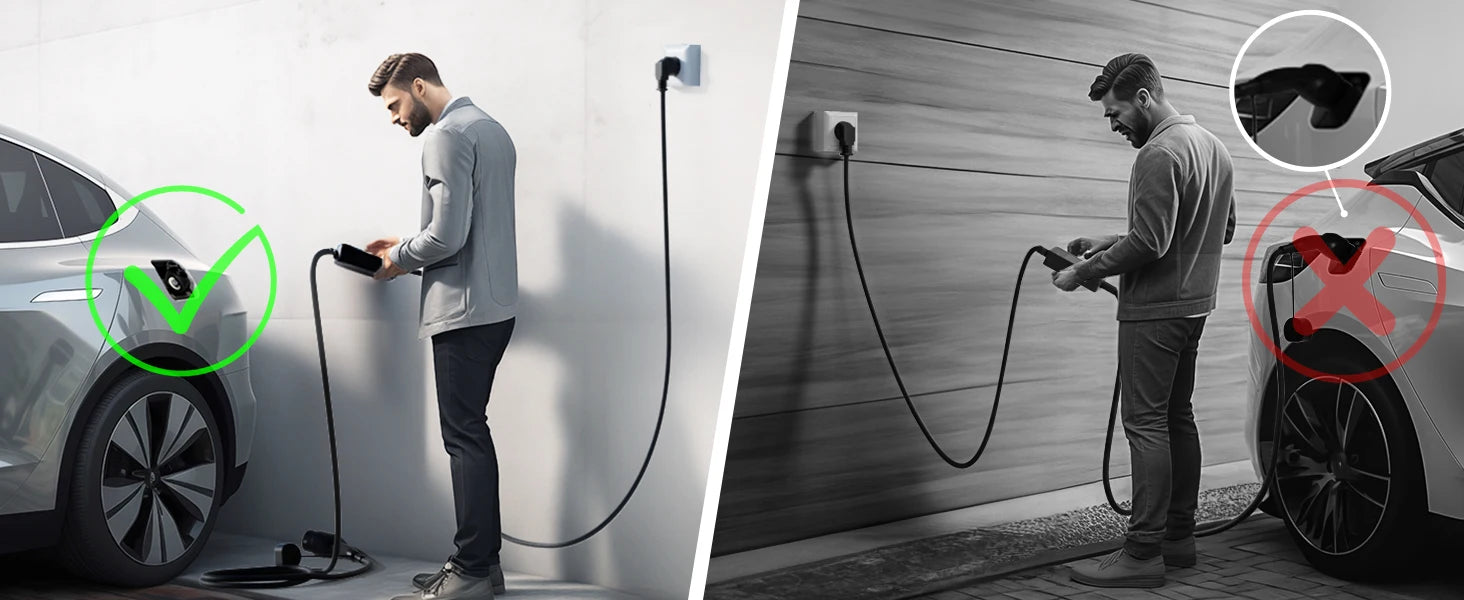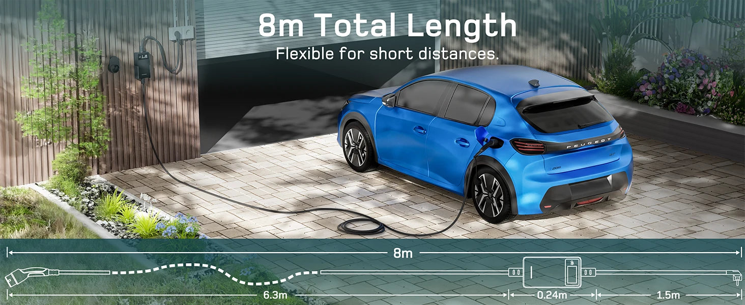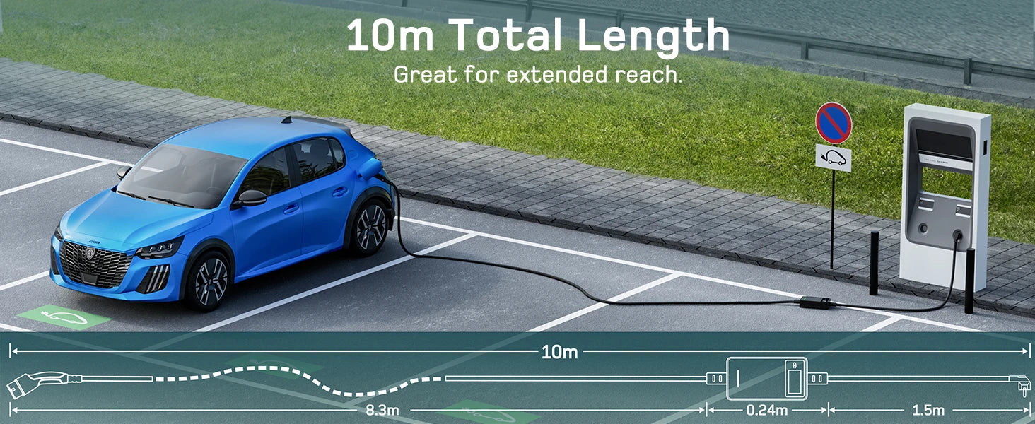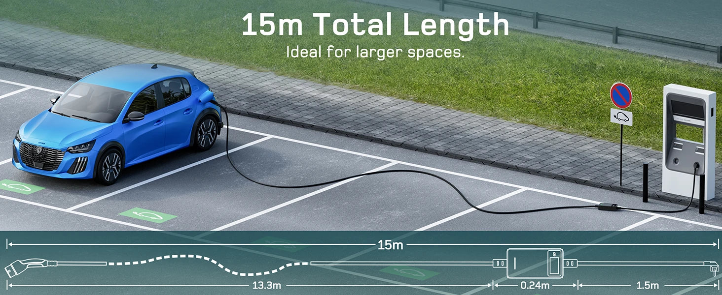 - Längere Kabellängen ermöglichen bequemes Laden auch bei weiter entfernt stehenden Steckdosen oder Garageingängen.