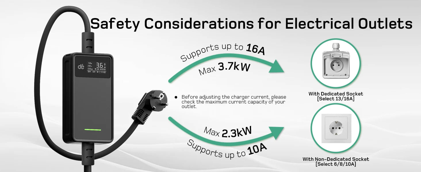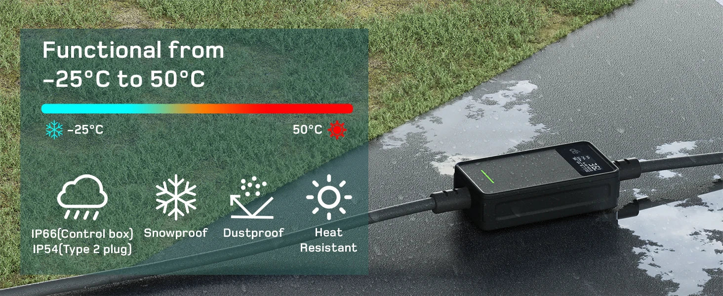 - Effizientes Laden mit 3,7 kW reduziert Ladezeiten im Vergleich zu sehr schwachen Ladegeräten und ist energieeffizient im Haushaltsbetrieb.