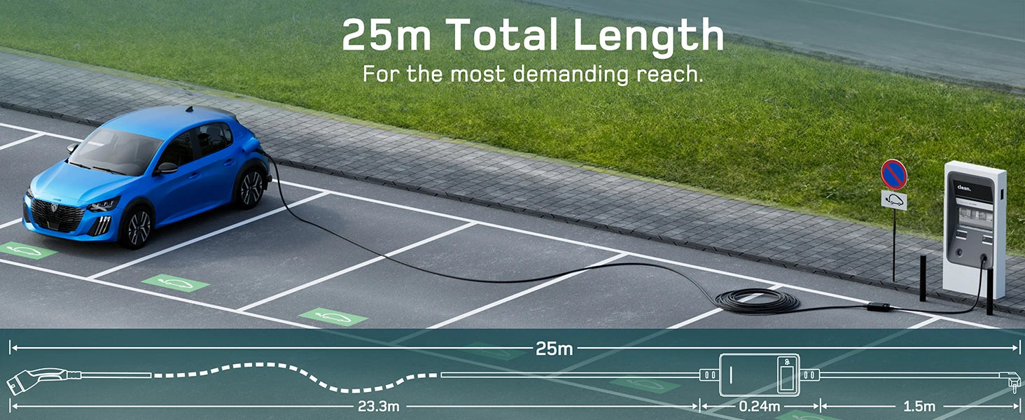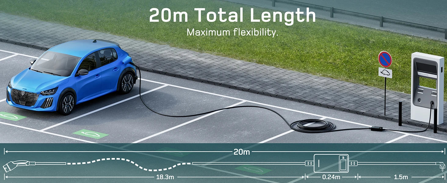 - Flexibilität bei der Kabellänge optimiert die Ladeplanung zu Hause, am Arbeitsplatz oder an temporären Ladepunkten.