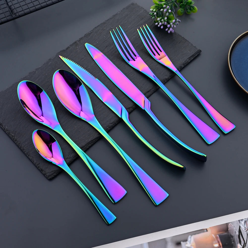 Tafelgeschirr Set Edelstahl 2025 - Küche Besteck Set Schwarz Steak Messer - Dessert Löffel Besteck Gabel Tafelgeschirr Zubehör