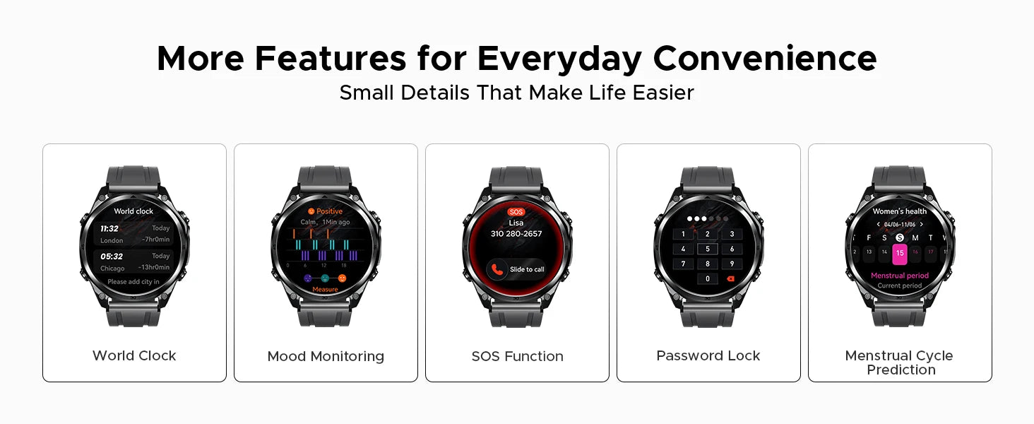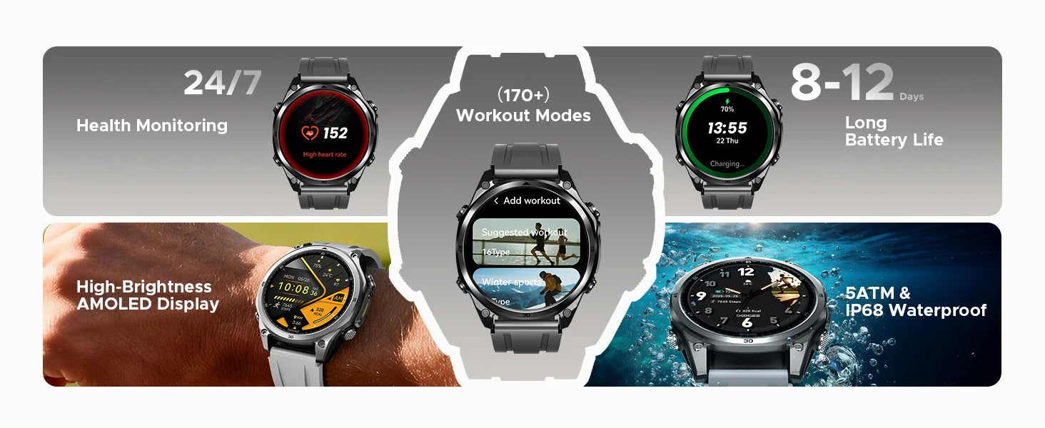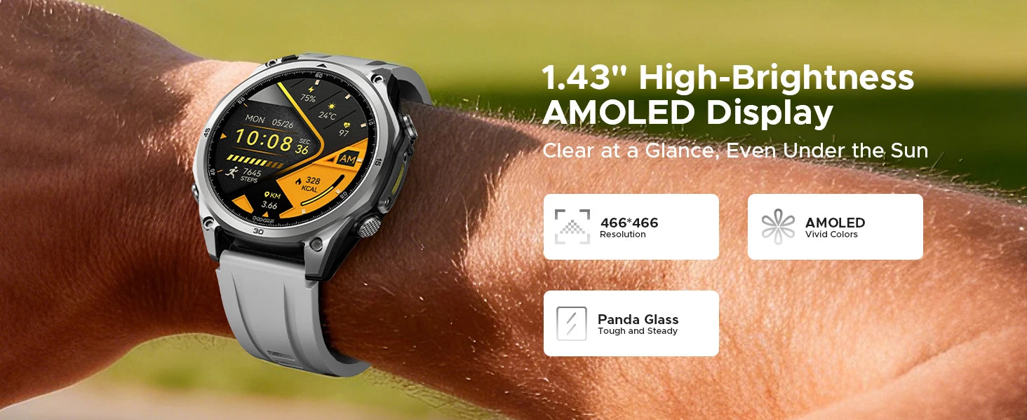 - Intuitives Display-Interface: Das 1,43-Zoll-AMOLED-Panel bietet klare Symbole, sanfte Gestensteuerung und gute Lesbarkeit auch bei hellem Licht.