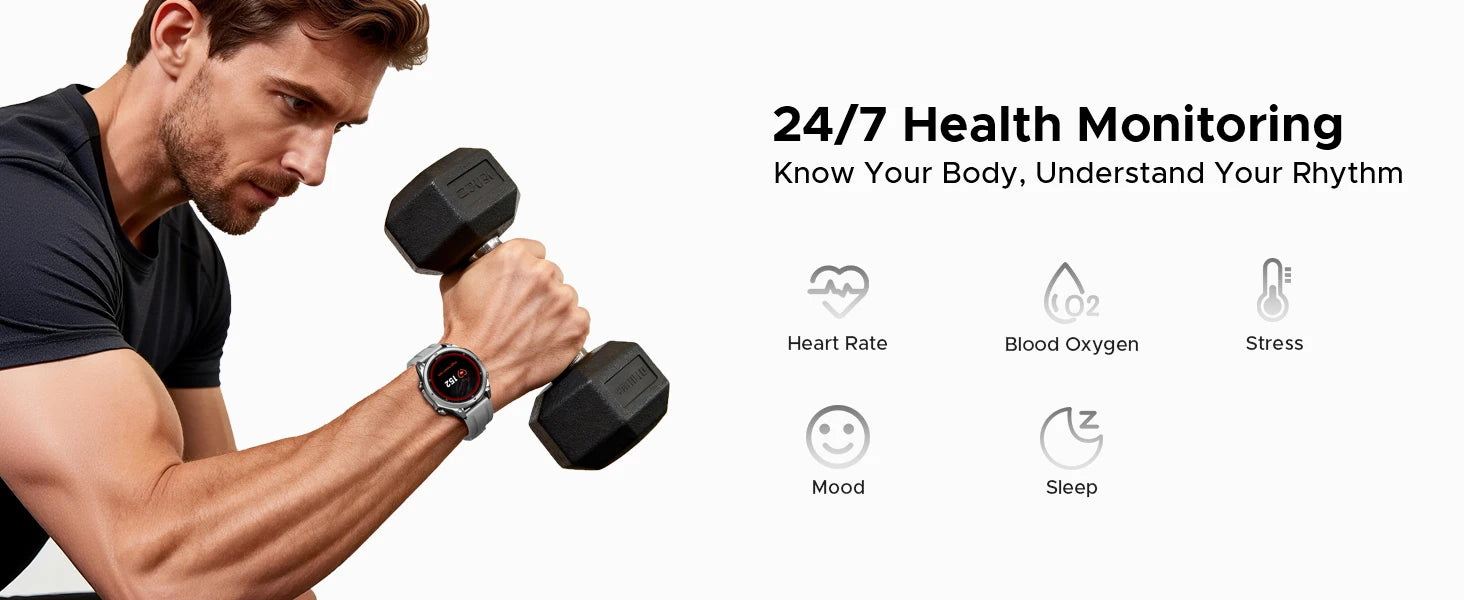 - Schlafmonitoring: Rund-um-die-Uhr-Überwachung von Schlafphasen, Erholungswerten und Musteranalyse für bessere Erholung.