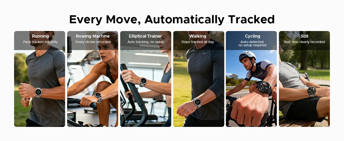 - 178 Sportmodi mit automatischer Bewegungserkennung: Von Laufen und Radfahren bis hin zu Rudern und Ellipsentraining – präzise Erfassung der Leistungsdaten.