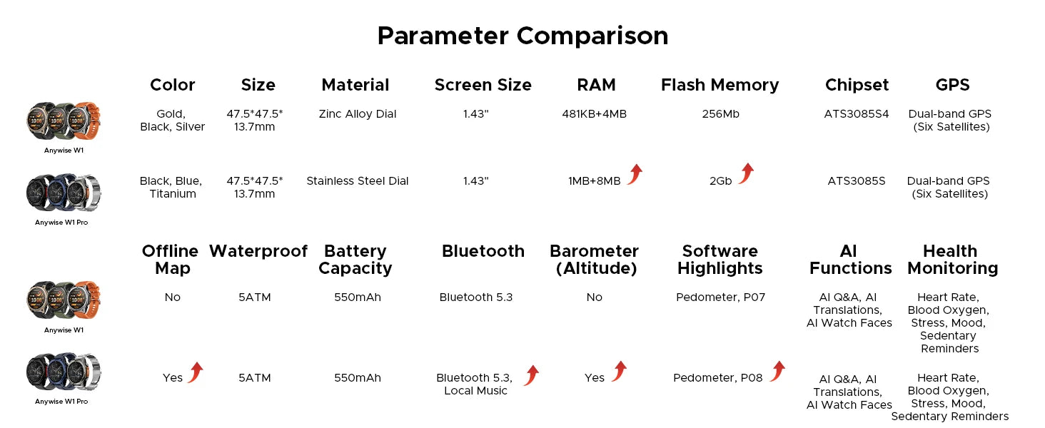 Der DOOGEE Anywise W1 Pro ist mehr als ein Fitness-Tracker: Er vereint präzises Gesundheits- und Aktivitätstracking mit GPS-Navigation, smarter Benachrichtigung und einem langlebigen, stilvollen Gehäuse. Er hilft Ihnen dabei, Ihre Ziele konsequent zu verfolgen, den Alltag effizienter zu gestalten und Ihre Fitness kontinuierlich zu verbessern – ohne dass Sie ständig Ihr Smartphone zücken müssen.