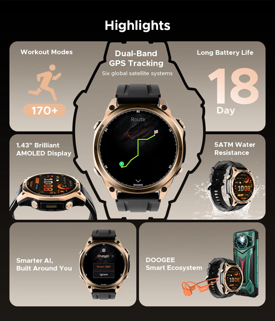 DOOGEE Anywise W1 AMOLED - Akkulaufzeit 18 Tage, Bluetooth 5.3, 1,43 Zoll