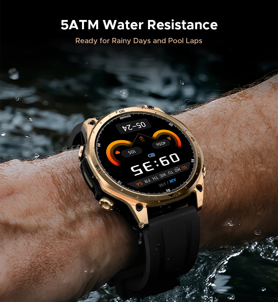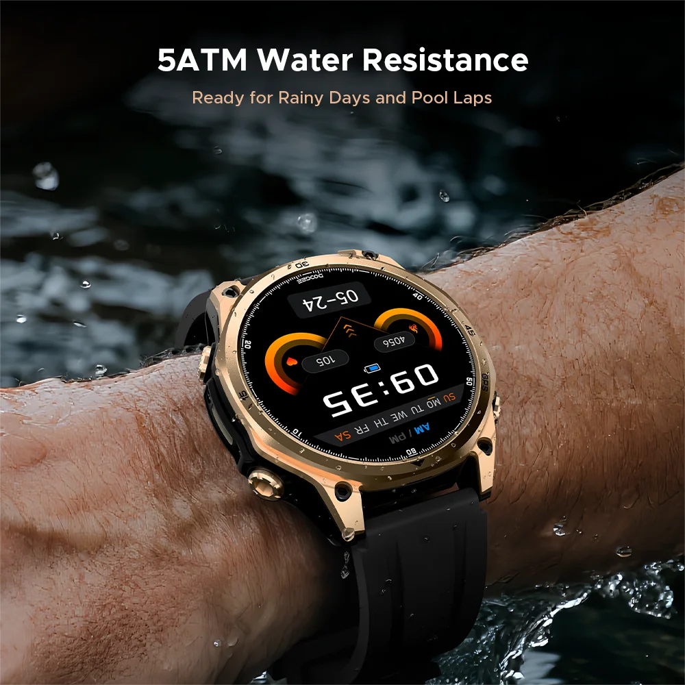 - Problem: Eingeschränkte Alltagstauglichkeit durch fehlende Wasserresistenz – Lösung: 5ATM-Wasserdichtigkeit schützt bei Alltagssport, Regen und Duschen