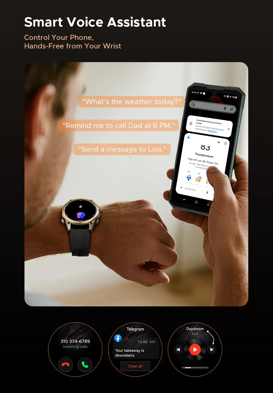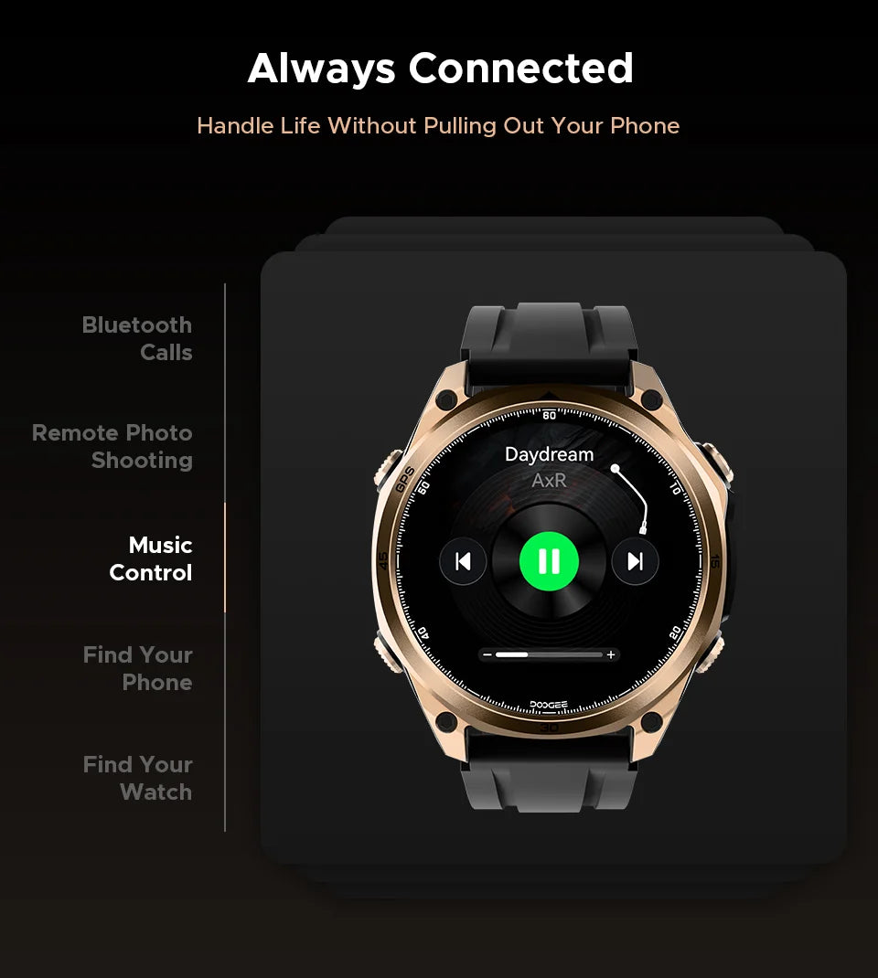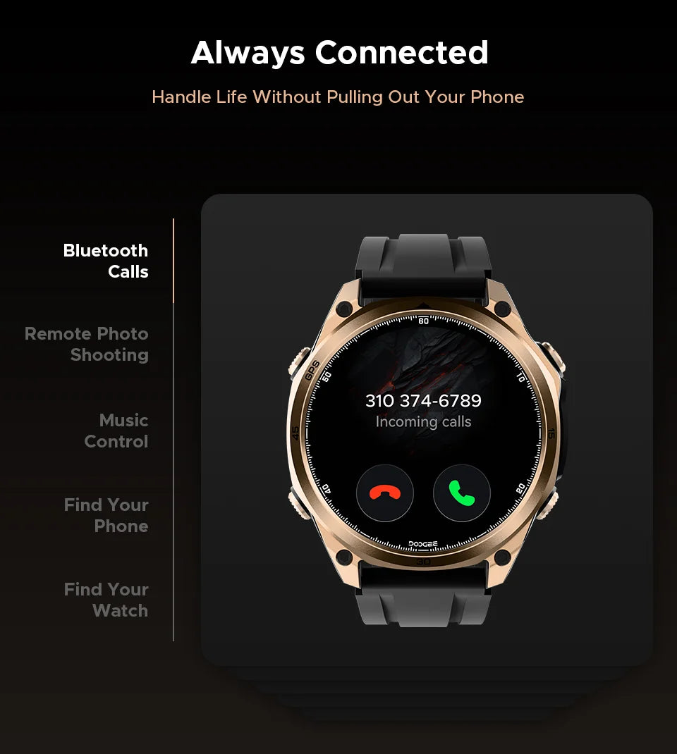 - Problem: Verpasste Benachrichtigungen oder langsame Reaktionszeiten – Lösung: Bluetooth 5.3 und zuverlässige Push-Benachrichtigungen mit schnellen Reaktionsmöglichkeiten