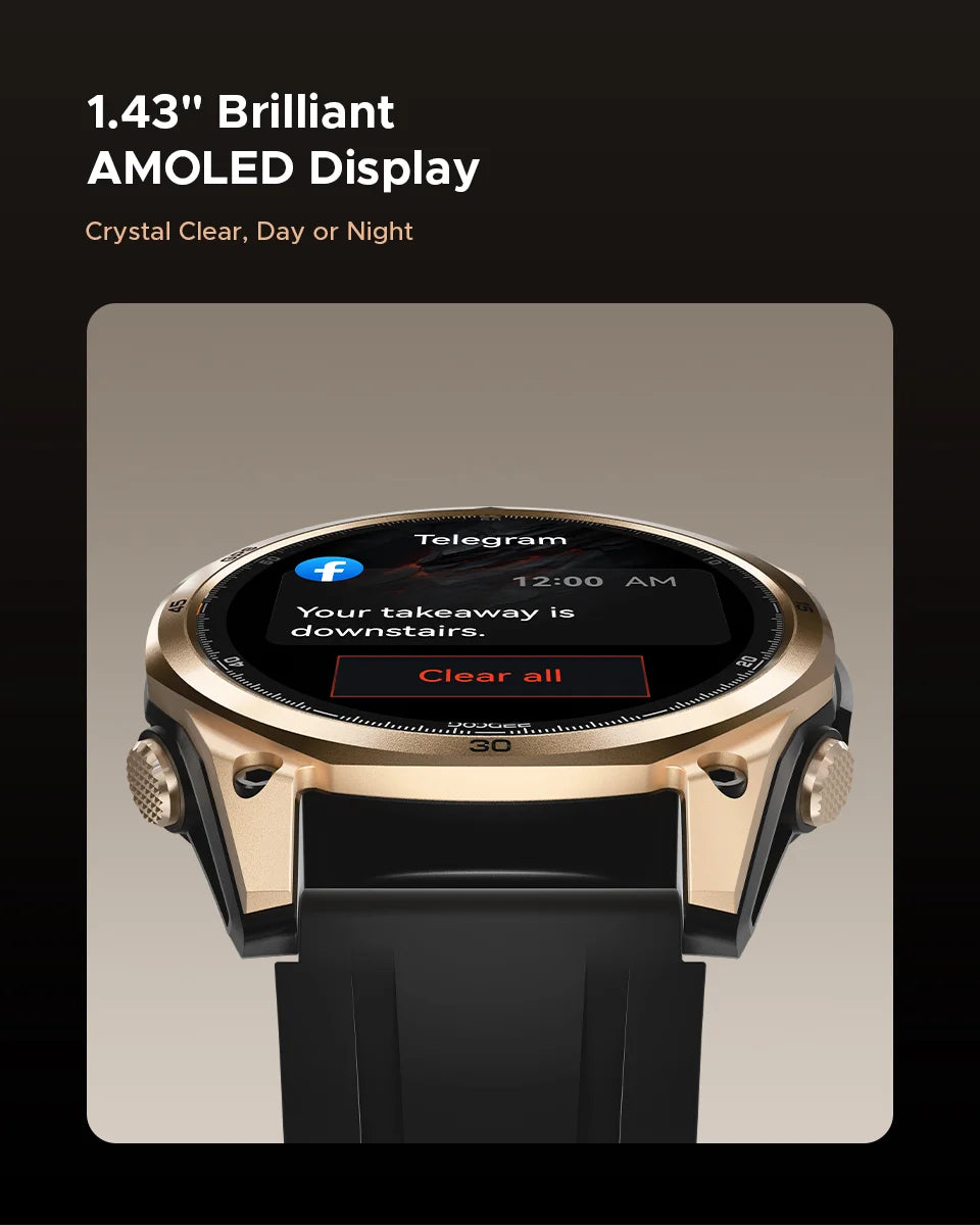 - Hell lesbares 1,43 Zoll AMOLED-Display mit scharfer Auflösung (466x466) für klare Anzeigen auch im Freien