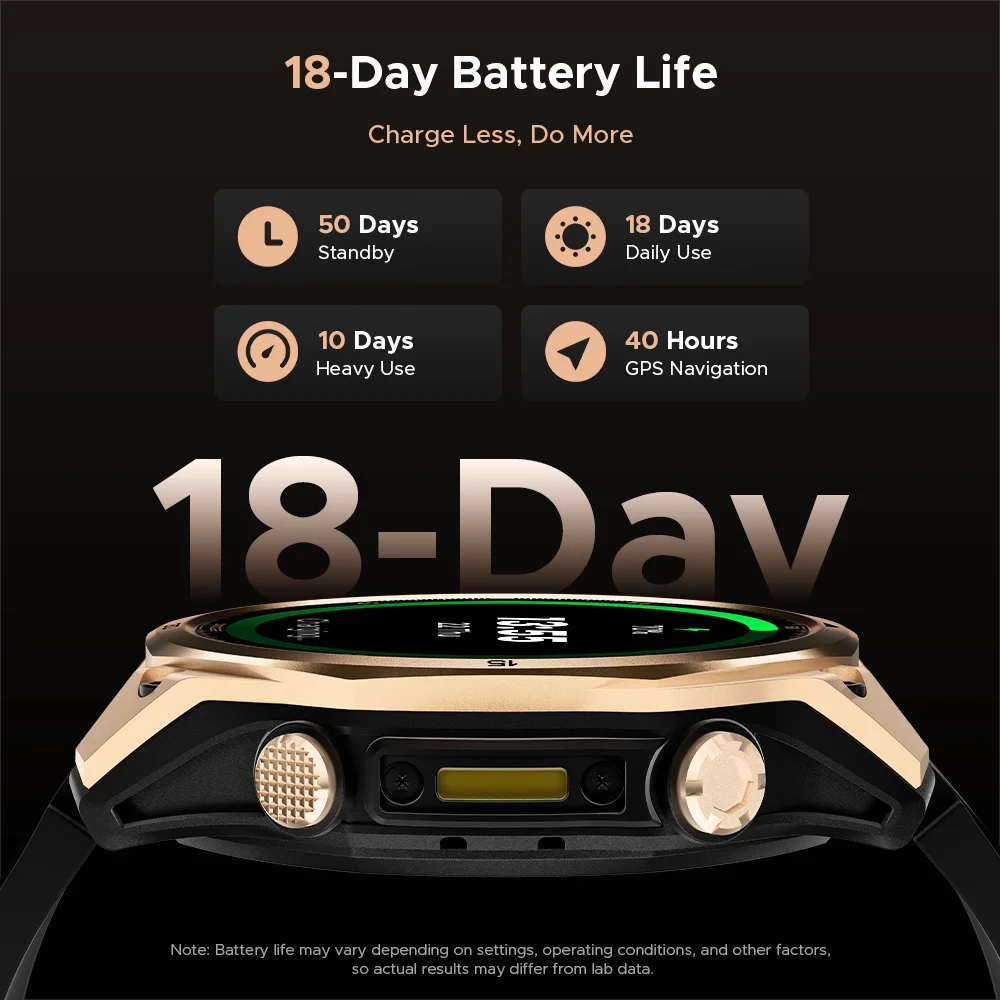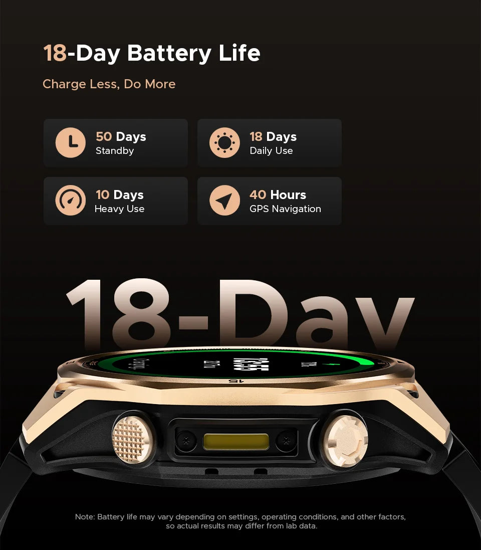 - Problem: Kurze Akkulaufzeit bei vielen Smartwatches – Lösung: Die Anywise W1 AMOLED bietet eine praktische Laufzeit von ca. 18 Tagen mit 550 mAh Akku