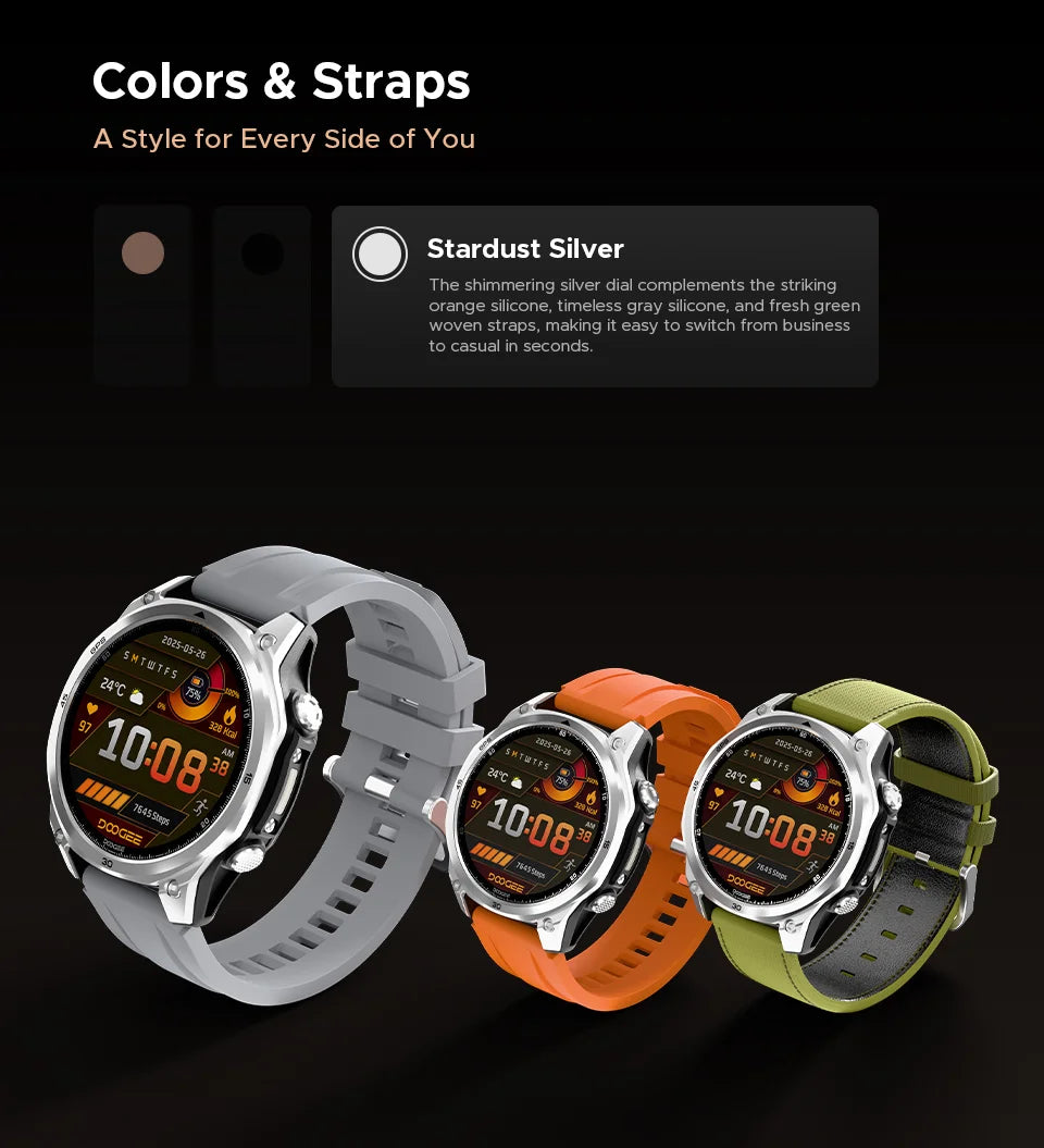 - Wechselbare Armbänder (22 mm) aus Silikon oder geflochtenem Material – passt zu jedem Anlass
