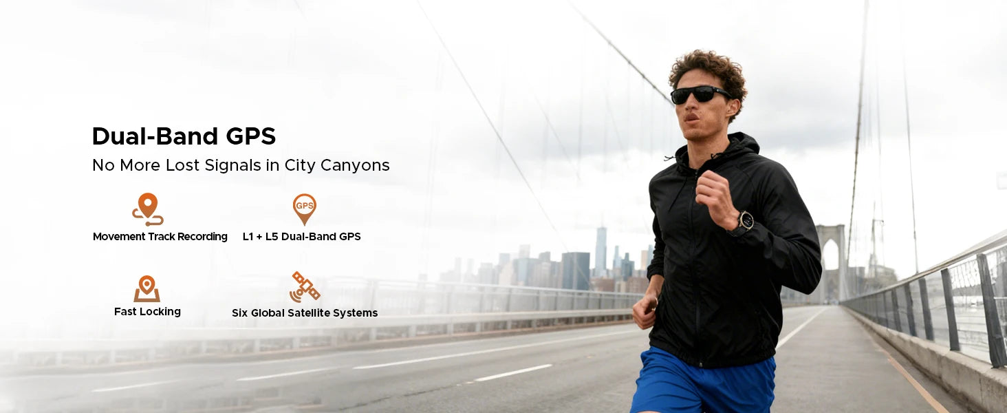 - GPS L1+L5 Dual-Band mit AGPS-Unterstützung liefert schnelle Satellitenverbindungen und präzise Streckenverfolgung – ideal für Outdoor-Aktivitäten.