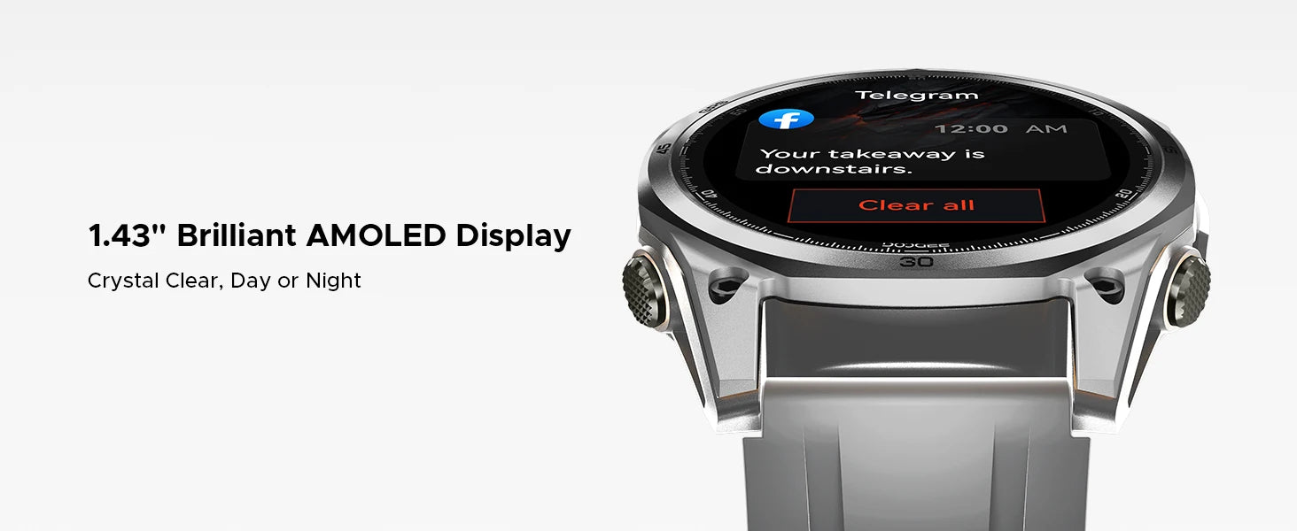 - 1,43" AMOLED-Display liefert klare Farben, scharfe Details und gute Ablesbarkeit auch bei wechselnden Lichtverhältnissen – ideal für unterwegs und am Arbeitsplatz.