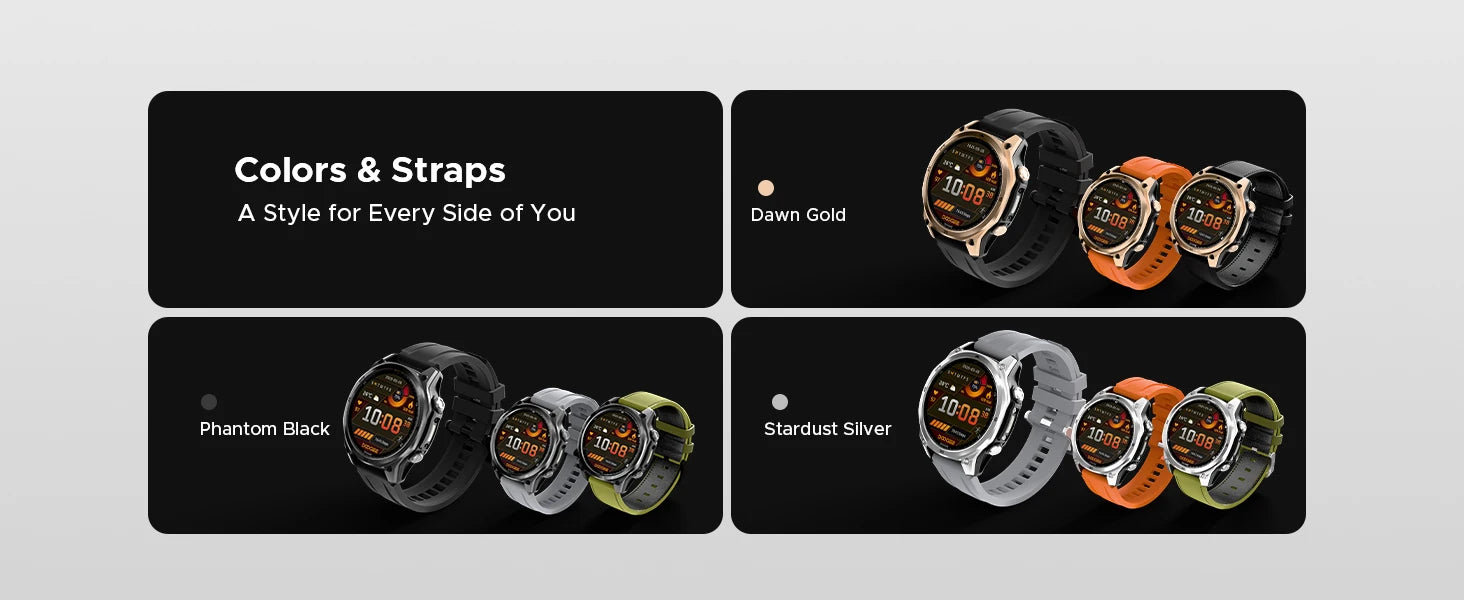 - Drei moderne Farbtöne – Dawn Gold, Stardust Silver und Hyper Black – für einen individuellen Stil, der zu jedem Outfit passt.