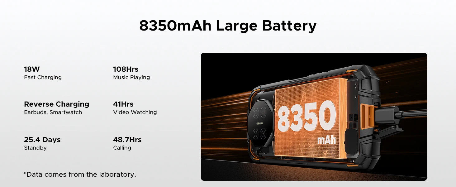 - Großer 8350 mAh Akku ermöglicht mehrdive Nutzung über Tage hinweg ohne ständiges Nachladen