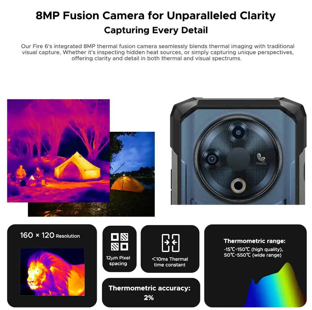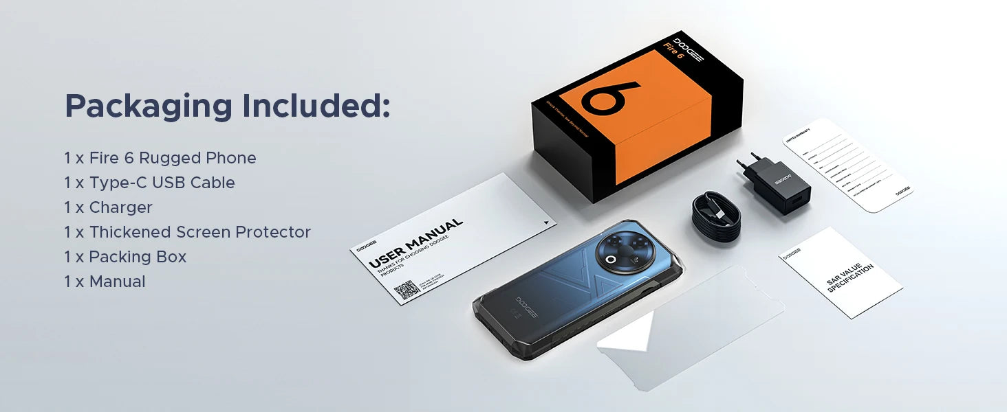 Der DOOGEE Fire 6 ist mehr als ein Smartphone: Er kombiniert robuste Bauweise, ein großformatiges 6,56-Zoll-Display, eine leistungsstarke Wärmebildkamera und eine beeindruckende Akkukapazität von 10400 mAh. Entwickelt für Anwender, die auch unter harten Einsatzbedingungen funktionale Zuverlässigkeit benötigen – beim Outdoor-Einsatz, auf Baustellen, bei Inspektionen oder Reiseabenteuern.