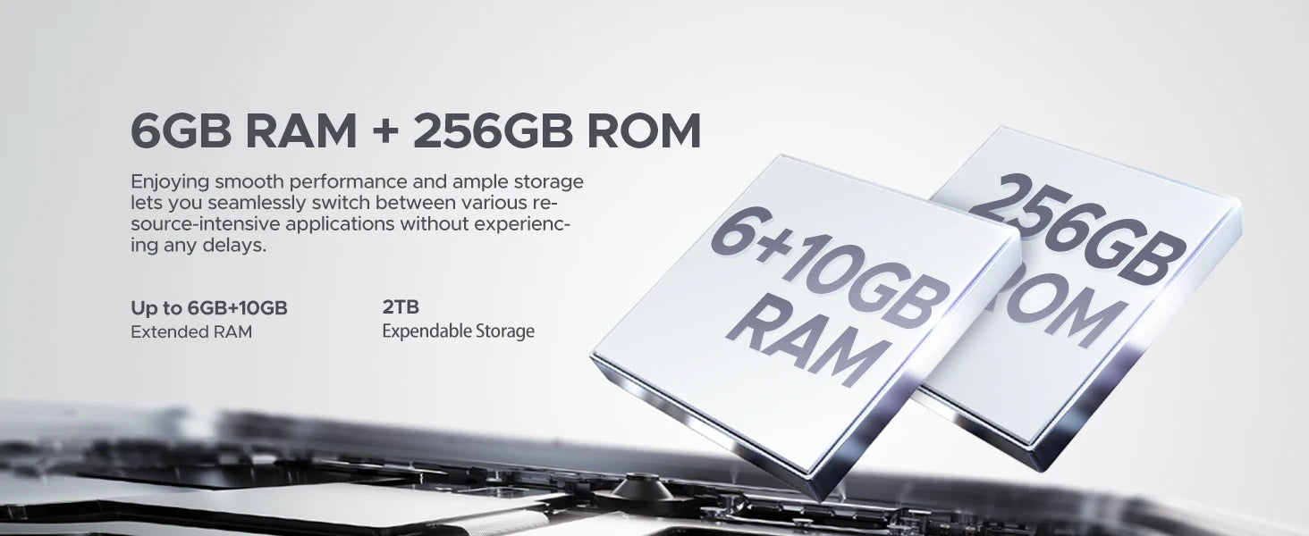 - Erweiterbarer Speicher: 16 GB RAM (6 GB + bis zu 10 GB erweiterter RAM) und 256 GB ROM, zusätzliche Micro-SD-Karte bis zu 2 TB – genug Platz für Fotos, Videos und Apps.
