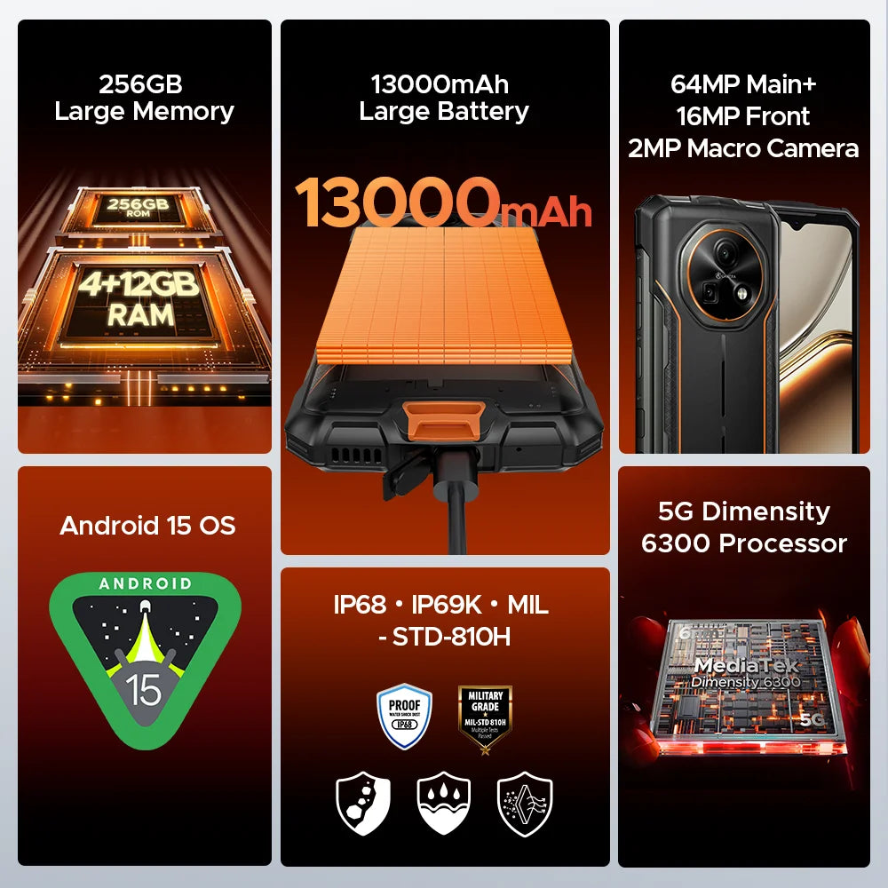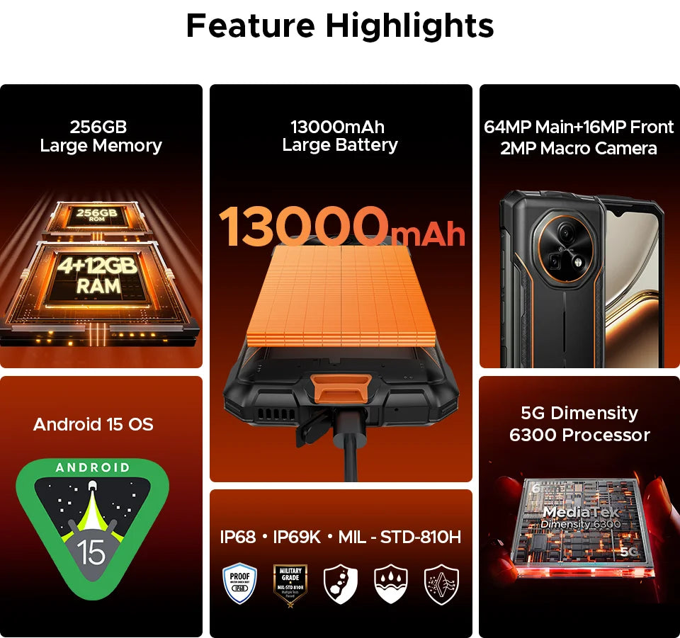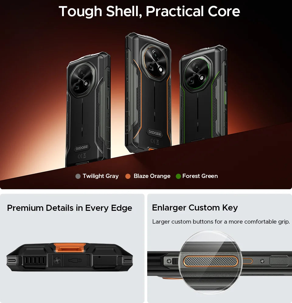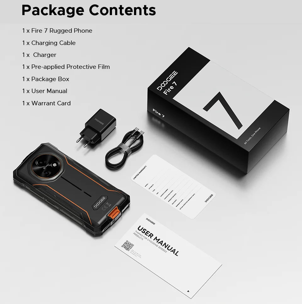 Das DOOGEE Fire 7 ist ein leistungsstarkes, robustes Smartphone, das speziell darauf ausgelegt ist, lange durchzuhalten, ohne Abstriche bei der Leistung zu machen. Es vereint eine ausdauernde Batterie, ein schnelles 5G-fähiges System, ein sanftes 90-Hz-Display und starke Kameras in einem Gehäuse, das Schutz vor Staub, Wasser und Stößen bietet. Der Fokus liegt darauf, Ihnen ein verlässliches Gerät zu bieten, das Sie in jedem Lebensbereich unterstützt – vom täglichen Pendeln über Outdoor-Abenteuer bis zur Arbeit unterwegs. So gehört das ständige Nachladen der Akkus der Vergangenheit an, während Sie von reibungsloser Leistung, sicherer Kommunikation und flexibler Speicheroption profitieren.
