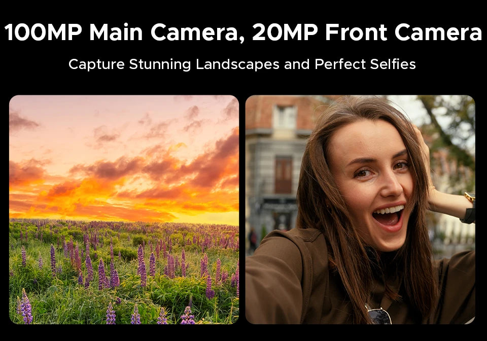 - Großartige Front- und Rückkameraqualität: 20 MP Frontkamera für Selbstporträts, 100 MP Hauptkamera für Details, ergänzt durch Nacht- und Makroaufnahmen.