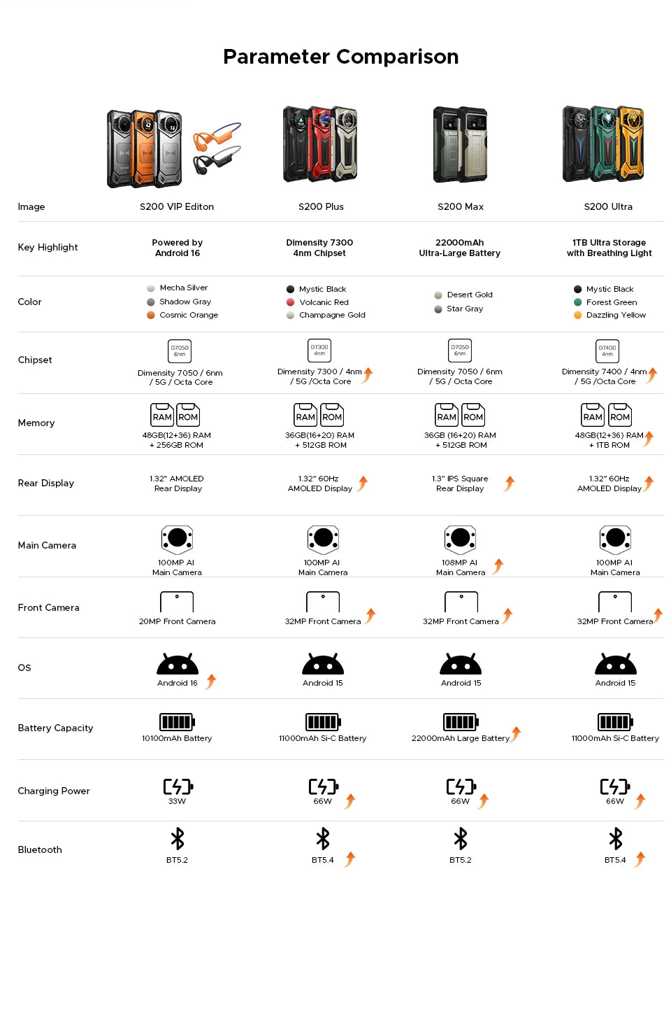 Der DOOGEE S200 VIP Edition ist ein leistungsstarkes 5G-Smartphone, das Robustheit, Leistung und extreme Ausdauer in einem kompakten, benutzerfreundlichen Paket vereint. Es übersteht harte Einsätze im Alltag genauso wie Abenteuer im Freien – mit einem gigantischen Akku, schneller Aufladung, modernster Konnektivität und beeindruckenden Kamerasystemen. Das Ergebnis: weniger Laden, mehr Produktivität, mehr Spaß – und ein Smartphone, das mit Ihnen wächst statt Sie zu stören. Dieses Gerät sorgt dafür, dass Sie jederzeit erreichbar bleiben, selbst dort, wo andere Smartphones schnell ans Ende ihrer Kapazität kommen.