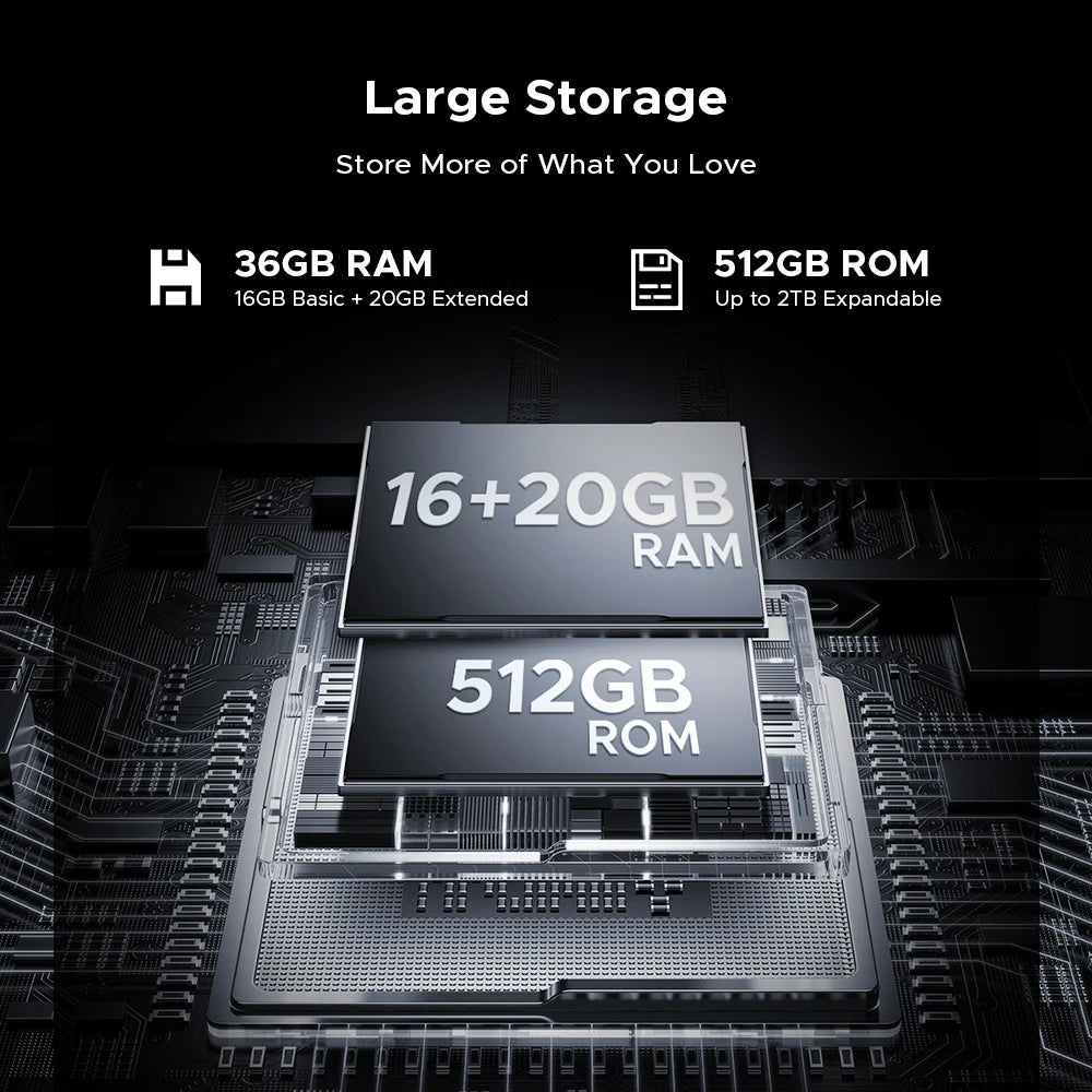 36 GBRAM (16 GB + bis zu 20 GB erweiterter RAM)+512 GBROM |